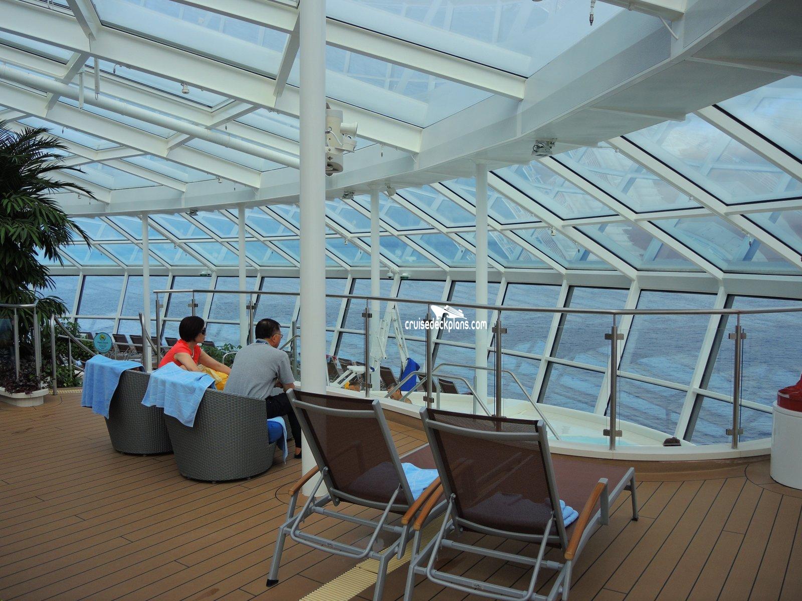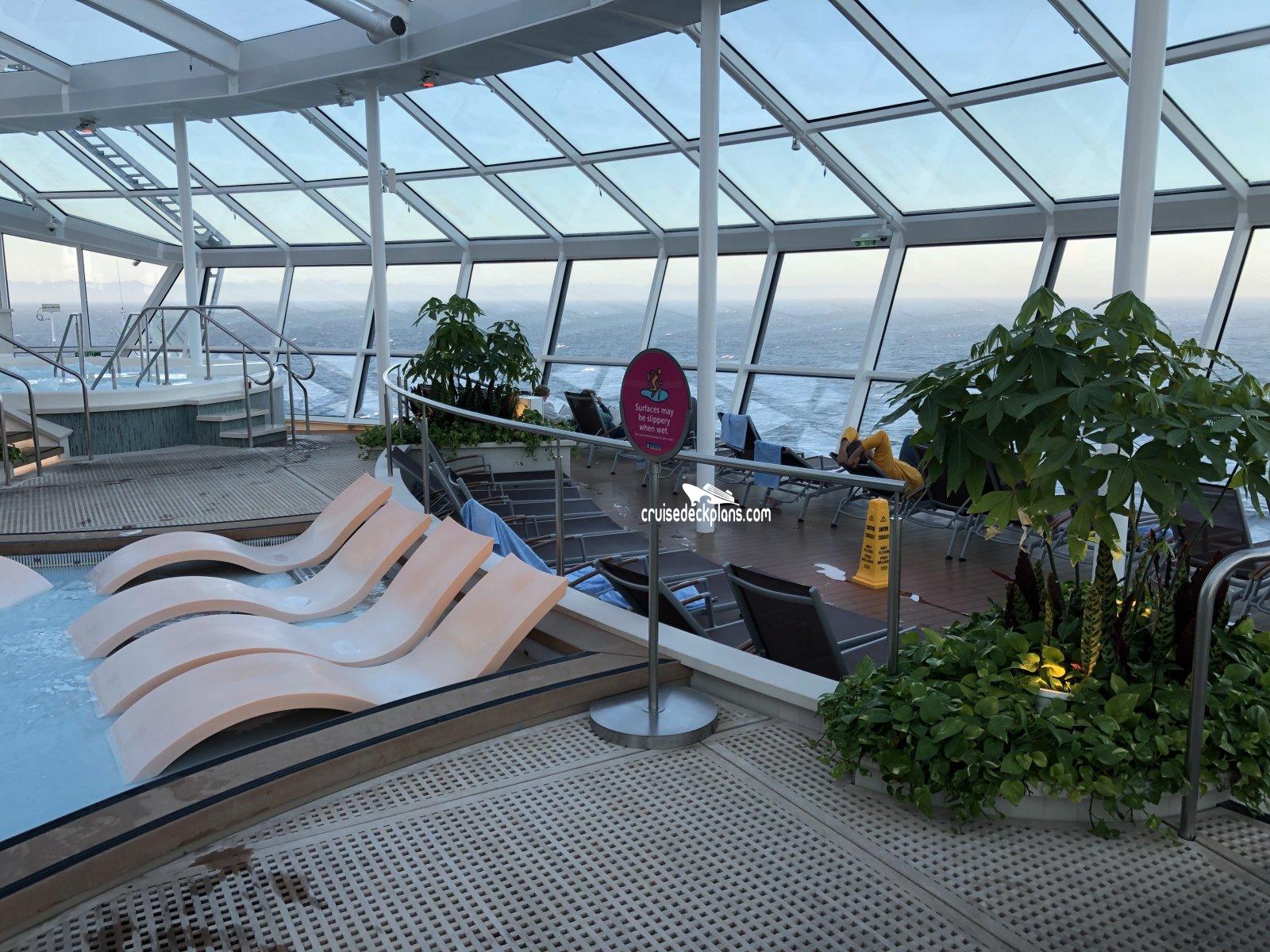 This page shows actual pictures for Ovation of the Seas Solarium. Most of our pictures are contributed by actual cruisers. You will find that all the Ovation of the Seas Solarium pictures on this page also posted directly onto our deck plans near the actual location the photo was taken. You can browse the pictures here or you can click on them as you are viewing the Ovation of the Seas deck plans. For deck plan viewing click on the ship button above or scroll down to view the pictures on this page.