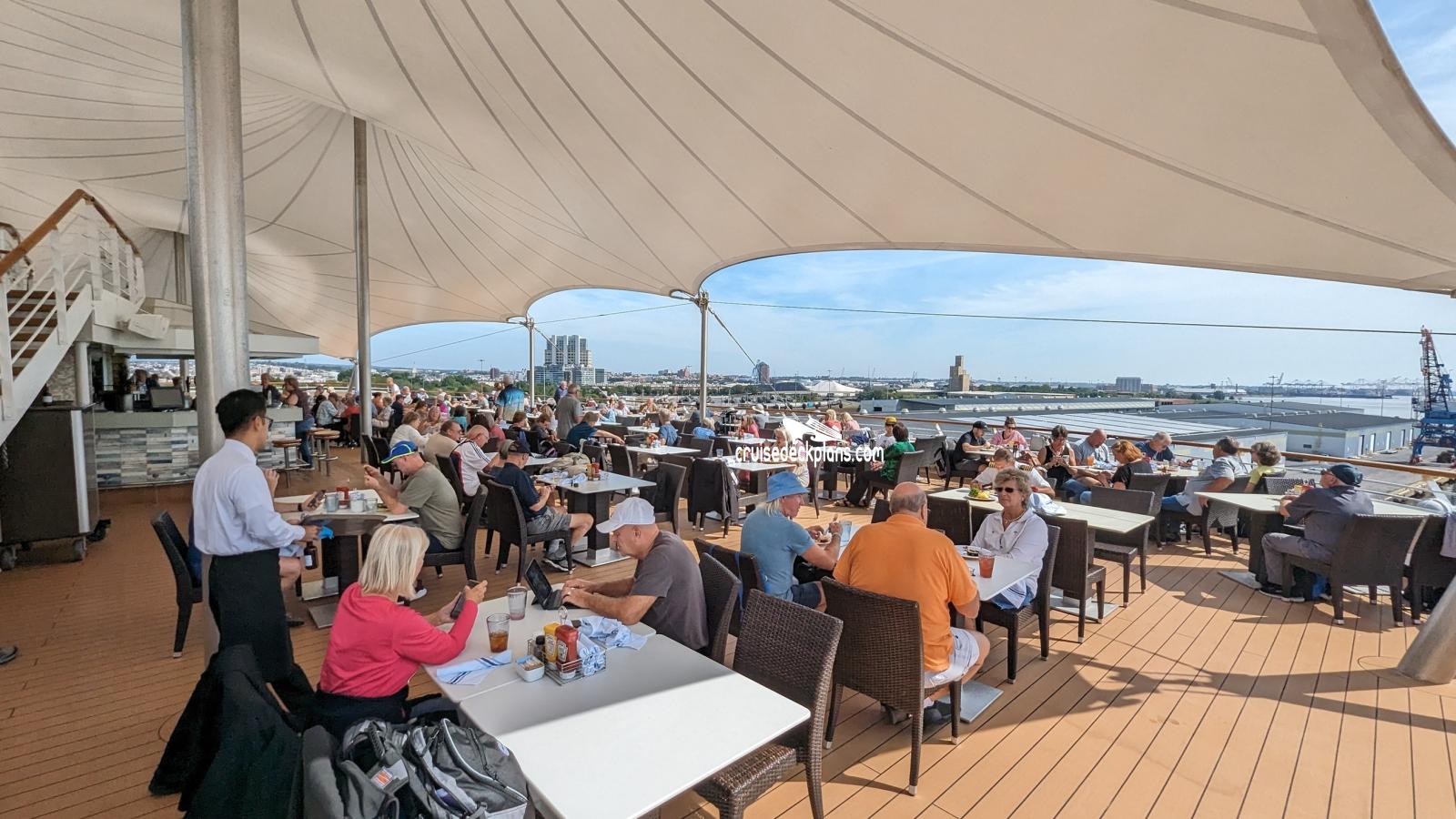 This page shows actual pictures for Norwegian Sky Great Outdoor Cafe. Most of our pictures are contributed by actual cruisers. You will find that all the Norwegian Sky Great Outdoor Cafe pictures on this page also posted directly onto our deck plans near the actual location the photo was taken. You can browse the pictures here or you can click on them as you are viewing the Norwegian Sky deck plans. For deck plan viewing click on the ship button above or scroll down to view the pictures on this page.