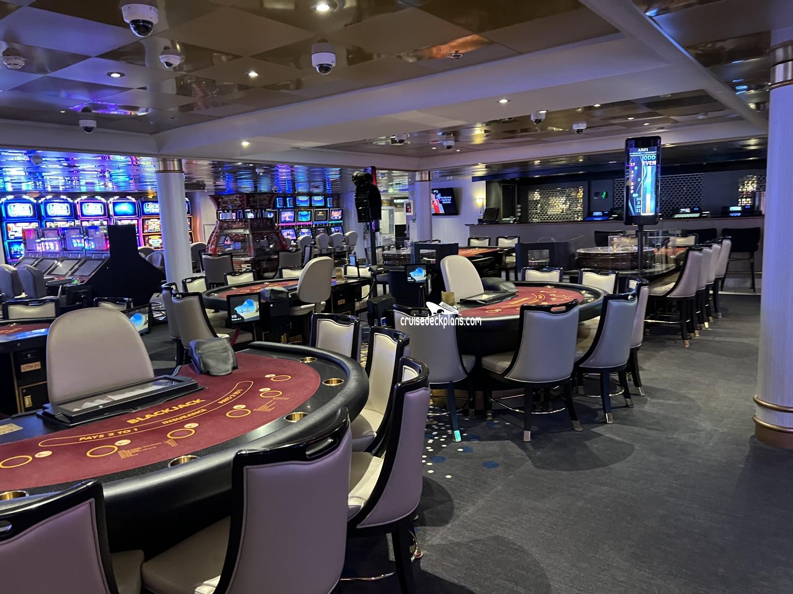 Features it's own bar which serves snacks from 11.30pm to close. Games on offer range from blackjack, craps, Caribbean stud poker and Texas Hold'Em to slot machines and are available to over 18's only.