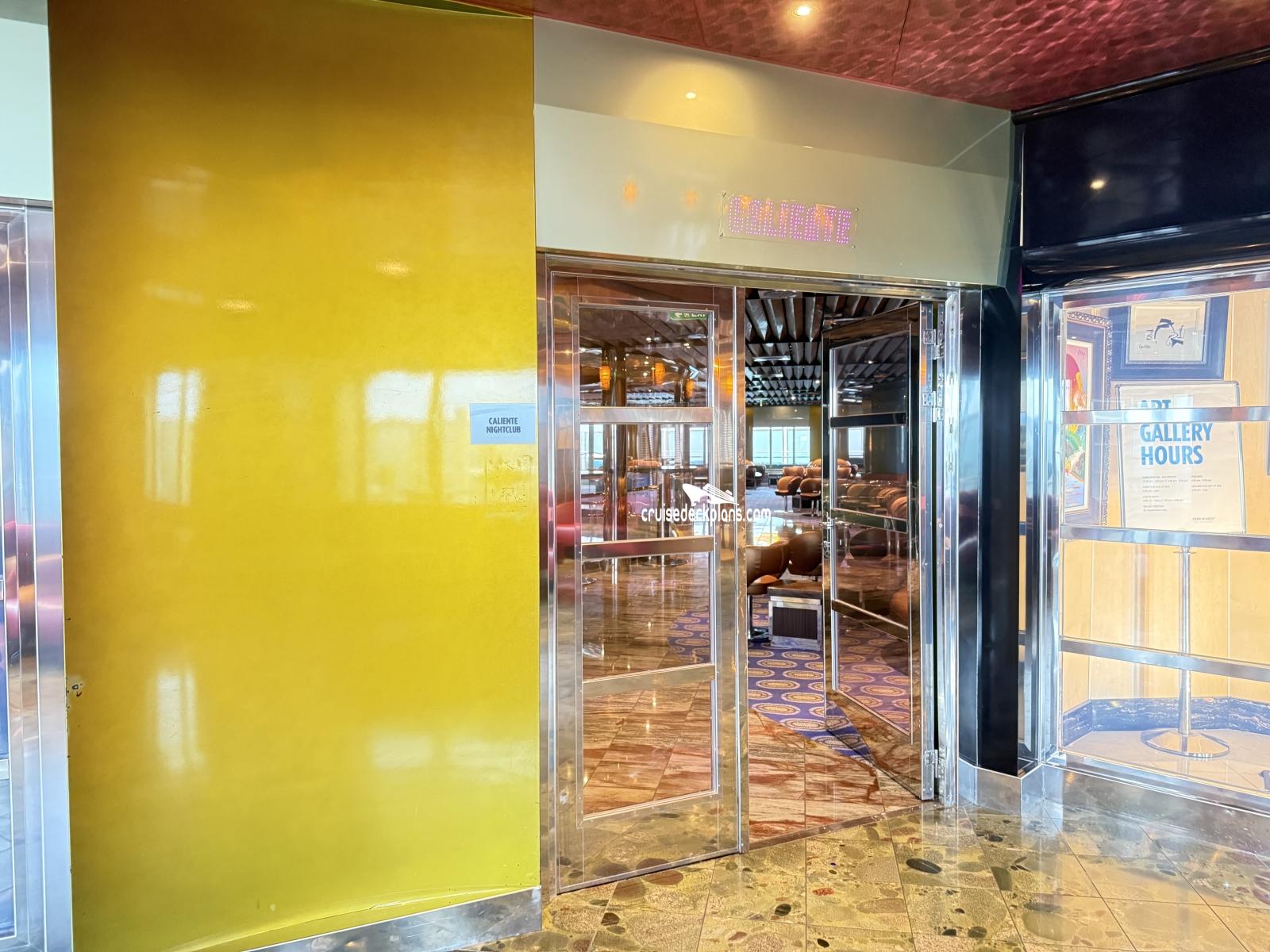 This page shows actual pictures for Carnival Dream Caliente Dance Club. Most of our pictures are contributed by actual cruisers. You will find that all the Carnival Dream Caliente Dance Club pictures on this page also posted directly onto our deck plans near the actual location the photo was taken. You can browse the pictures here or you can click on them as you are viewing the Carnival Dream deck plans. For deck plan viewing click on the ship button above or scroll down to view the pictures on this page.