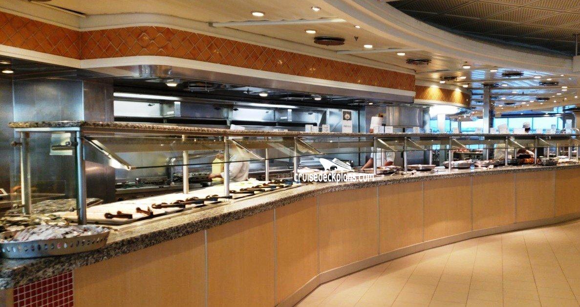 This page shows actual pictures for Adventure of the Seas Windjammer Cafe. Most of our pictures are contributed by actual cruisers. You will find that all the Adventure of the Seas Windjammer Cafe pictures on this page also posted directly onto our deck plans near the actual location the photo was taken. You can browse the pictures here or you can click on them as you are viewing the Adventure of the Seas deck plans. For deck plan viewing click on the ship button above or scroll down to view the pictures on this page.