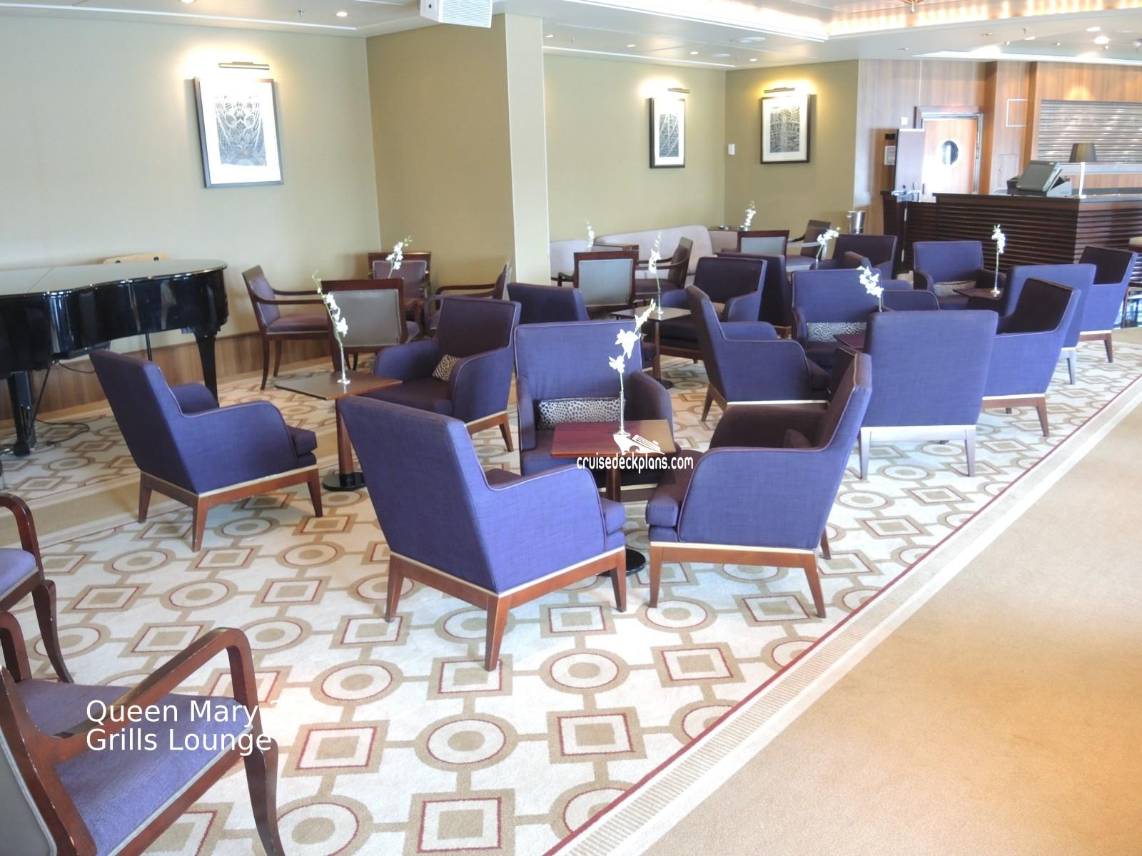 This page shows actual pictures for Queen Mary 2 Queens Grill Lounge. Most of our pictures are contributed by actual cruisers. You will find that all the Queen Mary 2 Queens Grill Lounge pictures on this page also posted directly onto our deck plans near the actual location the photo was taken. You can browse the pictures here or you can click on them as you are viewing the Queen Mary 2 deck plans. For deck plan viewing click on the ship button above or scroll down to view the pictures on this page.