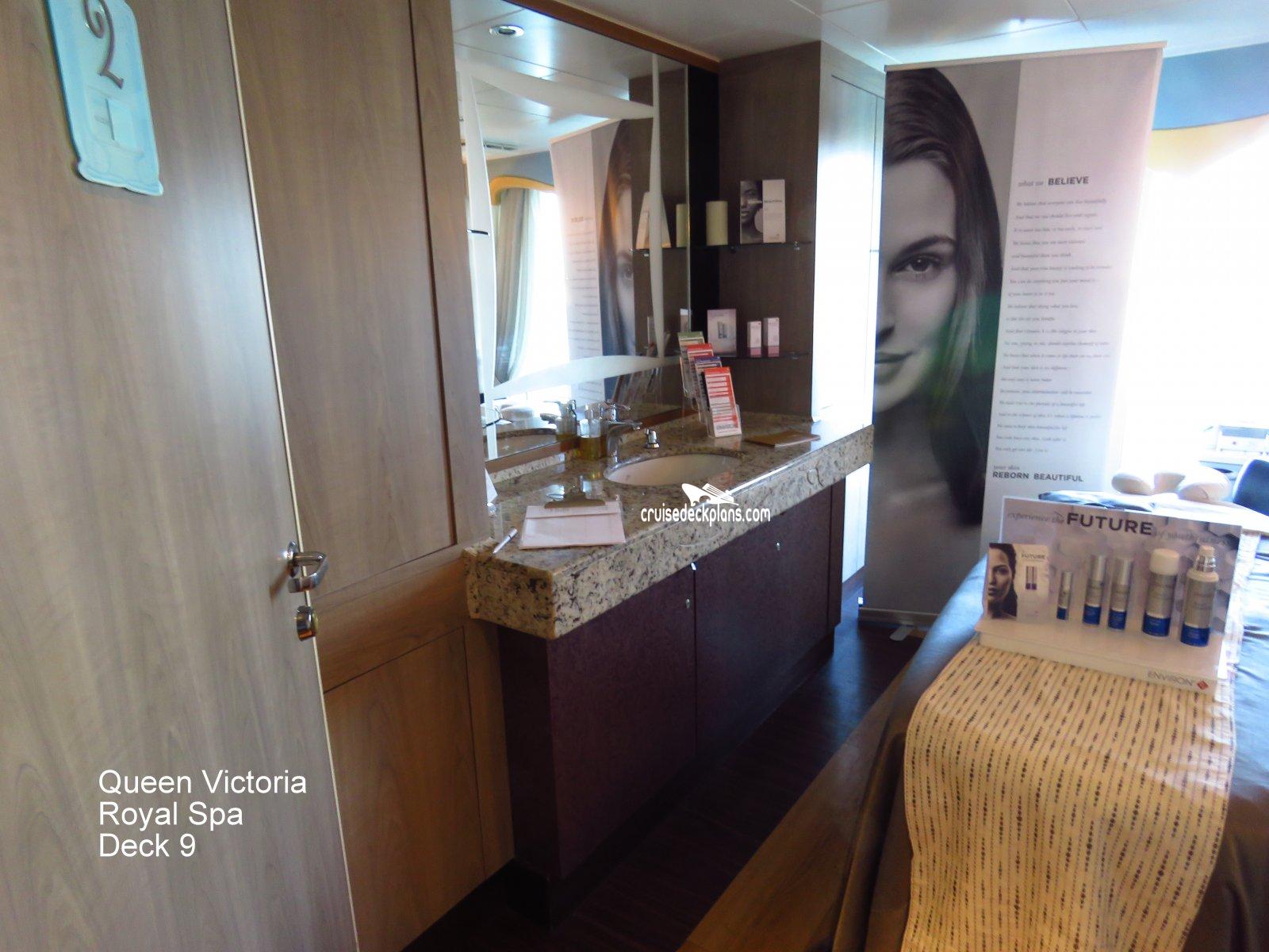 This page shows actual pictures for Queen Victoria Royal Spa. Most of our pictures are contributed by actual cruisers. You will find that all the Queen Victoria Royal Spa pictures on this page also posted directly onto our deck plans near the actual location the photo was taken. You can browse the pictures here or you can click on them as you are viewing the Queen Victoria deck plans. For deck plan viewing click on the ship button above or scroll down to view the pictures on this page.