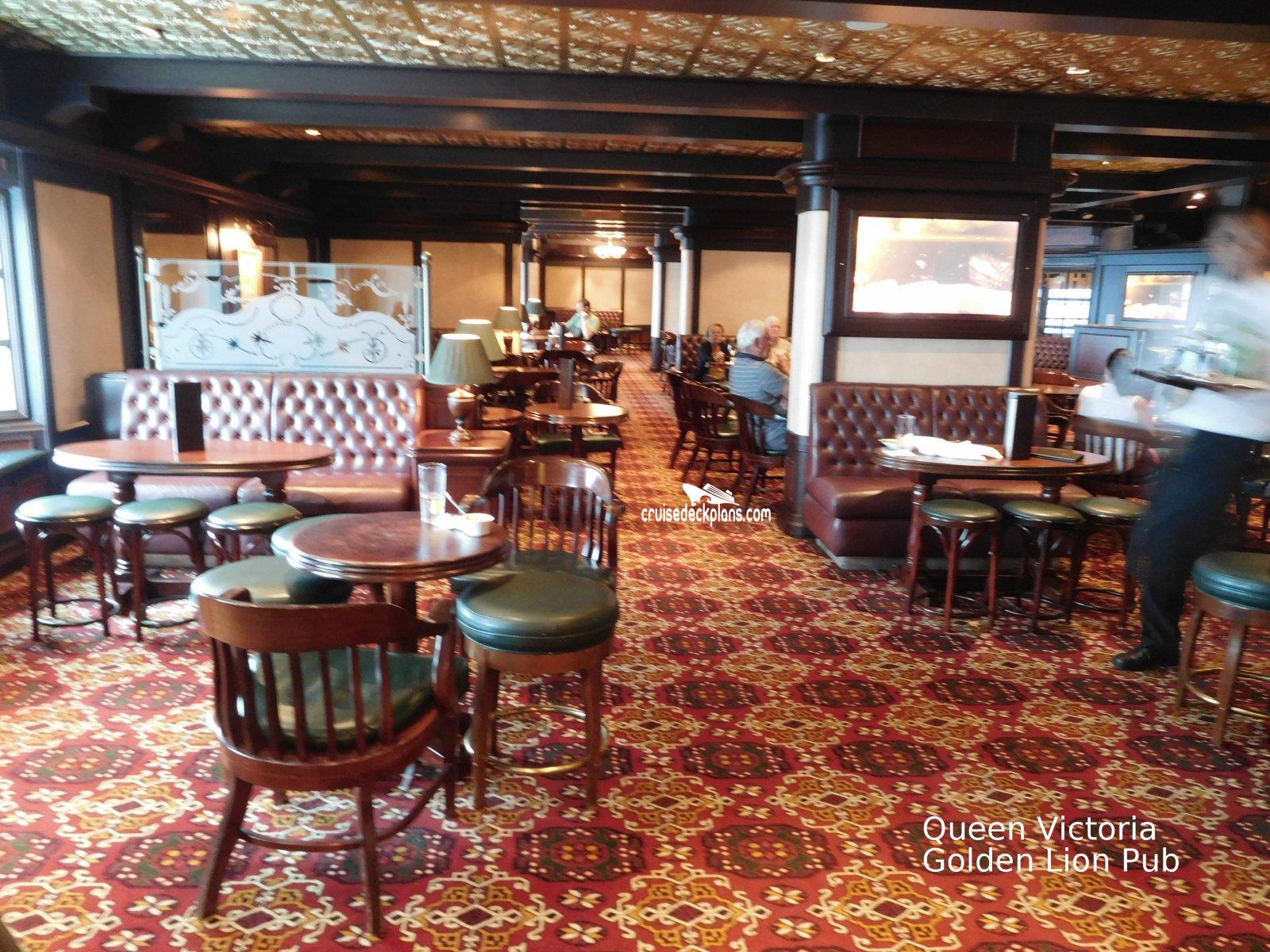This page shows actual pictures for Queen Victoria Golden Lion Pub. Most of our pictures are contributed by actual cruisers. You will find that all the Queen Victoria Golden Lion Pub pictures on this page also posted directly onto our deck plans near the actual location the photo was taken. You can browse the pictures here or you can click on them as you are viewing the Queen Victoria deck plans. For deck plan viewing click on the ship button above or scroll down to view the pictures on this page.