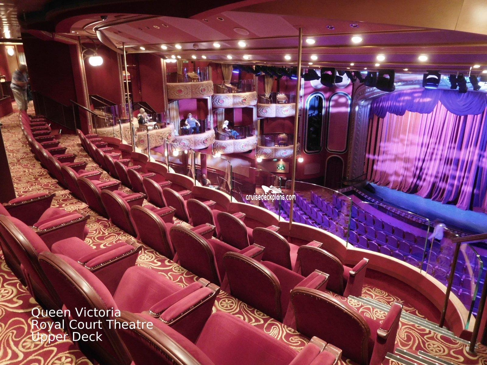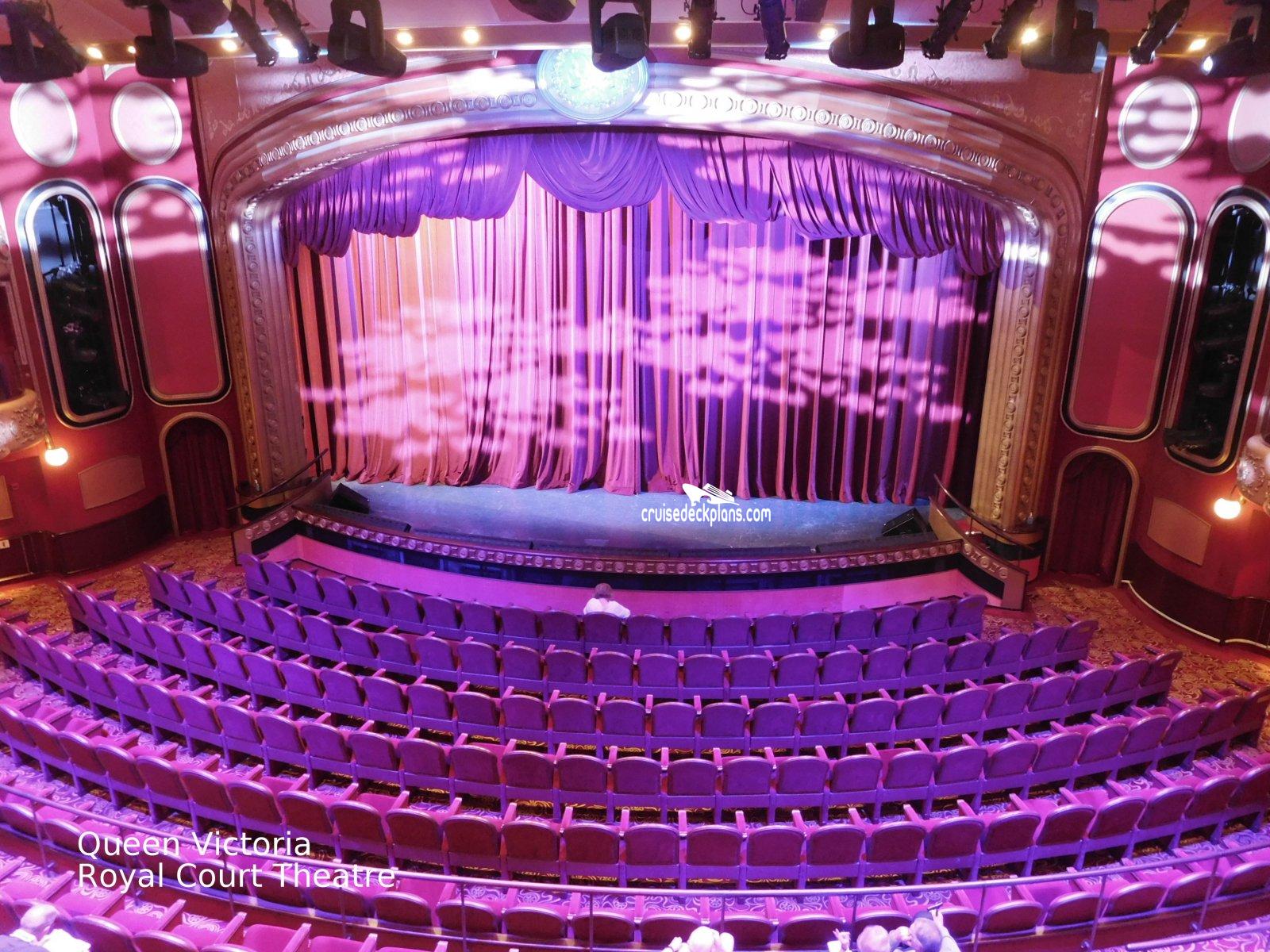 This page shows actual pictures for Queen Victoria Royal Court Theatre. Most of our pictures are contributed by actual cruisers. You will find that all the Queen Victoria Royal Court Theatre pictures on this page also posted directly onto our deck plans near the actual location the photo was taken. You can browse the pictures here or you can click on them as you are viewing the Queen Victoria deck plans. For deck plan viewing click on the ship button above or scroll down to view the pictures on this page.