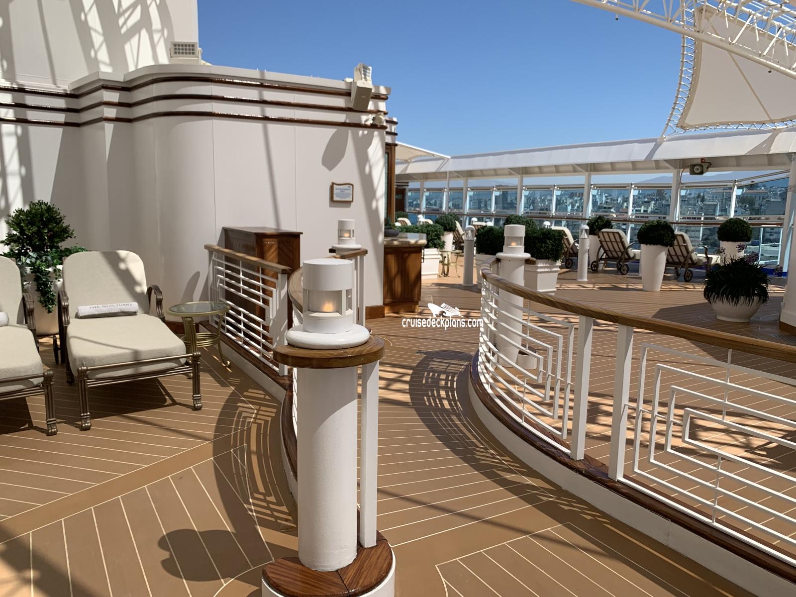 Provides an oasis of tranquility for guests with private cabanas with their own refrigerators and flat screen TV's. Leading off the sanctuary is the ship's adult only retreat pool with four private cabanas at the edge of the pool and two hot tubs.