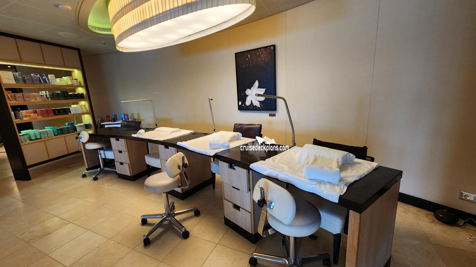 This page shows actual pictures for Regal Princess Lotus Spa. Most of our pictures are contributed by actual cruisers. You will find that all the Regal Princess Lotus Spa pictures on this page also posted directly onto our deck plans near the actual location the photo was taken. You can browse the pictures here or you can click on them as you are viewing the Regal Princess deck plans. For deck plan viewing click on the ship button above or scroll down to view the pictures on this page.