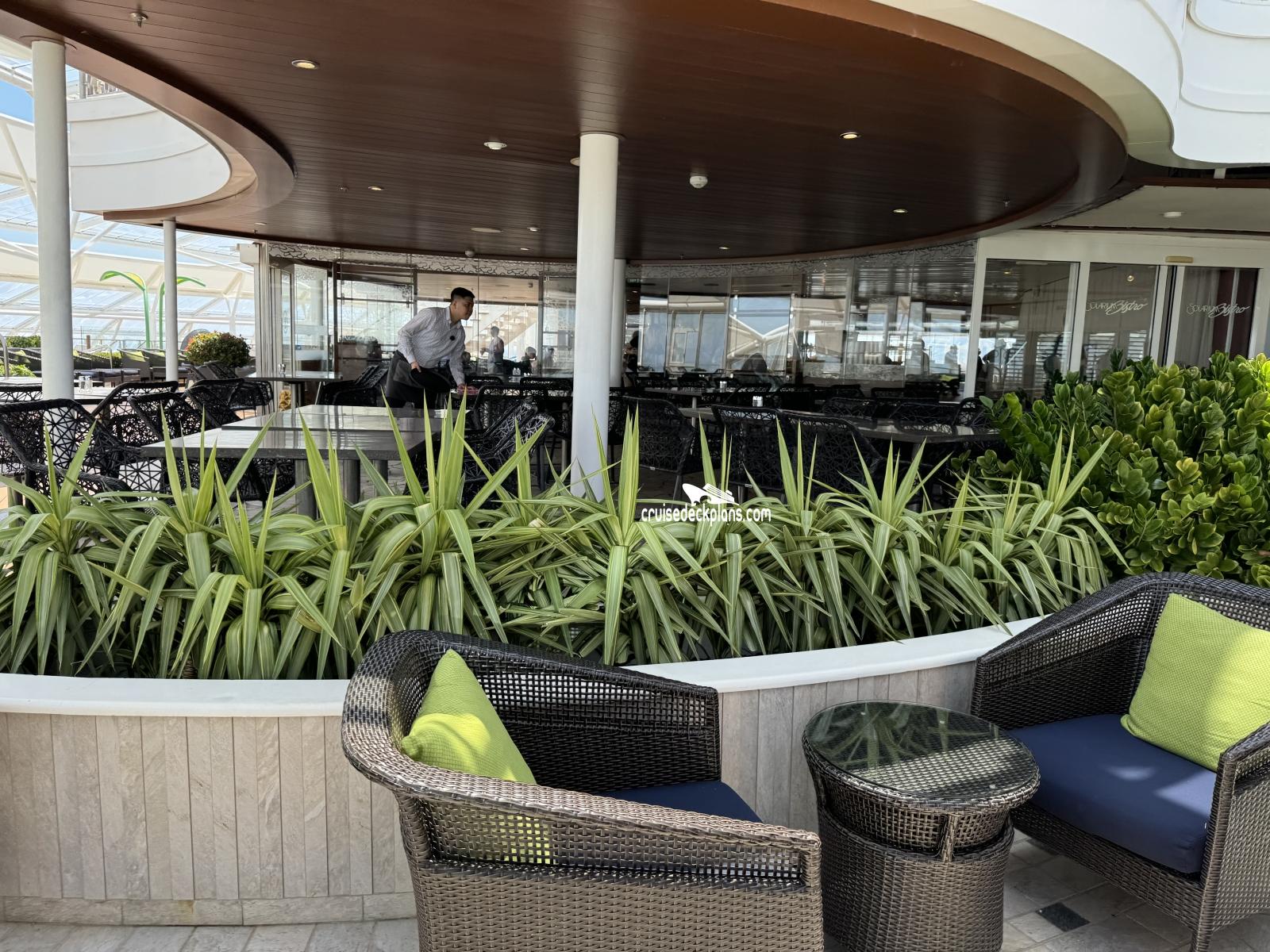 This page shows actual pictures for Harmony of the Seas Solarium Bistro. Most of our pictures are contributed by actual cruisers. You will find that all the Harmony of the Seas Solarium Bistro pictures on this page also posted directly onto our deck plans near the actual location the photo was taken. You can browse the pictures here or you can click on them as you are viewing the Harmony of the Seas deck plans. For deck plan viewing click on the ship button above or scroll down to view the pictures on this page.