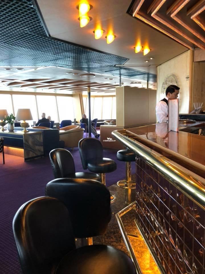 Provides passengers with 270 degrees ocean views and makes the ideal location to sit with a drinks and watch the sunset. A range of entertainment is hosted here from karaoke to the ship's Hal Cats (an eight piece party band). In the evening it transforms into the ship's nightclub.