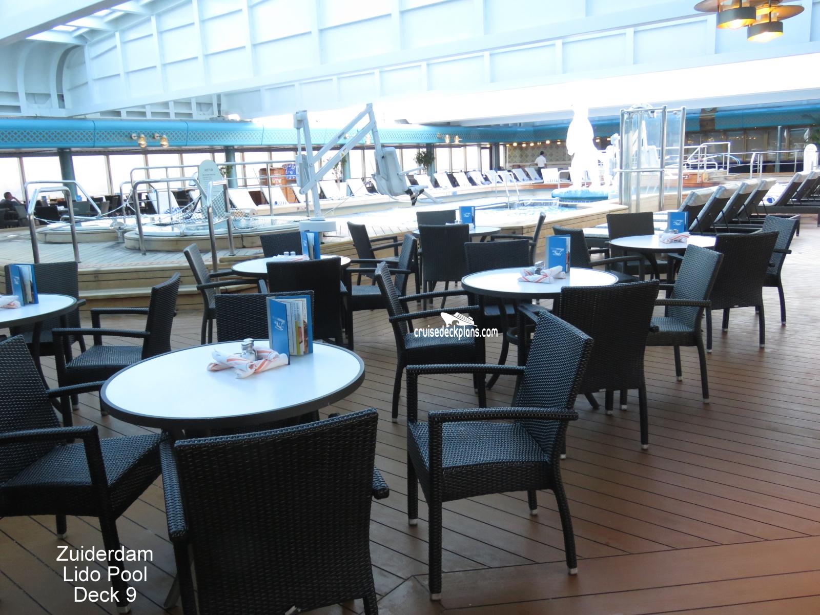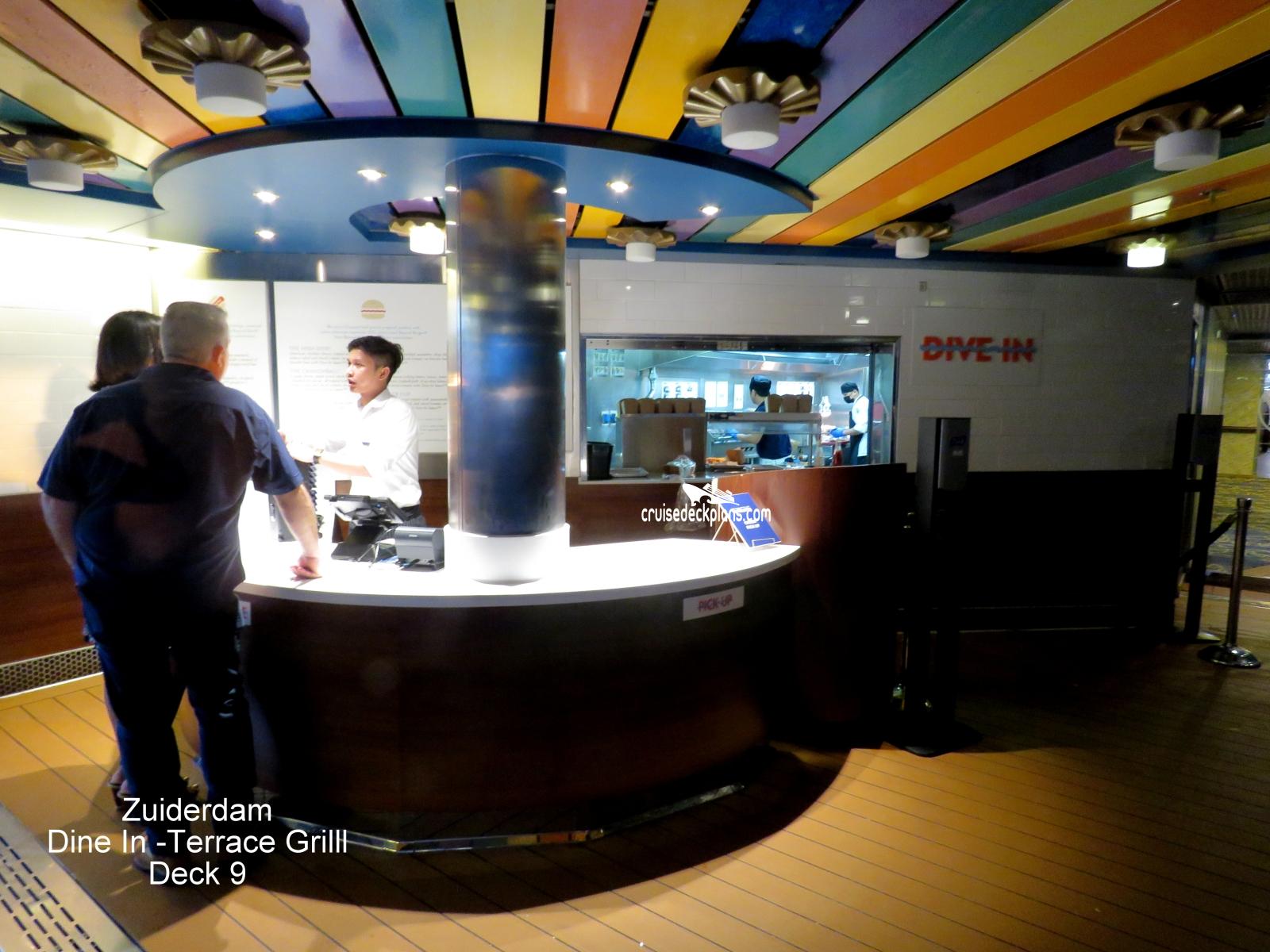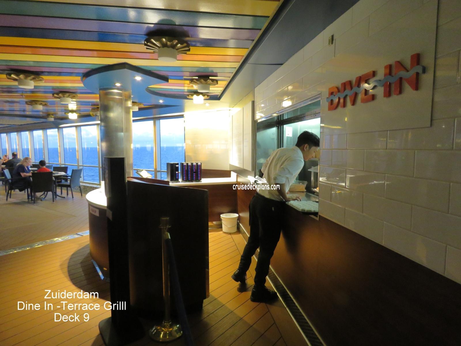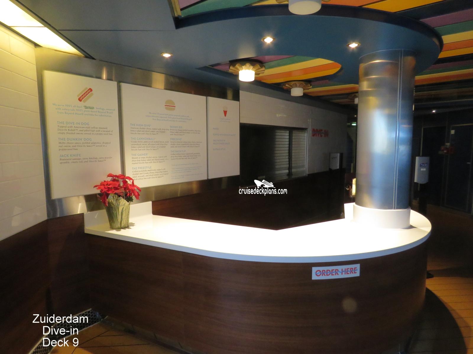 Zuiderdam Dive-In is located on Lido (deck). We have provided the deck plan image for your reference.