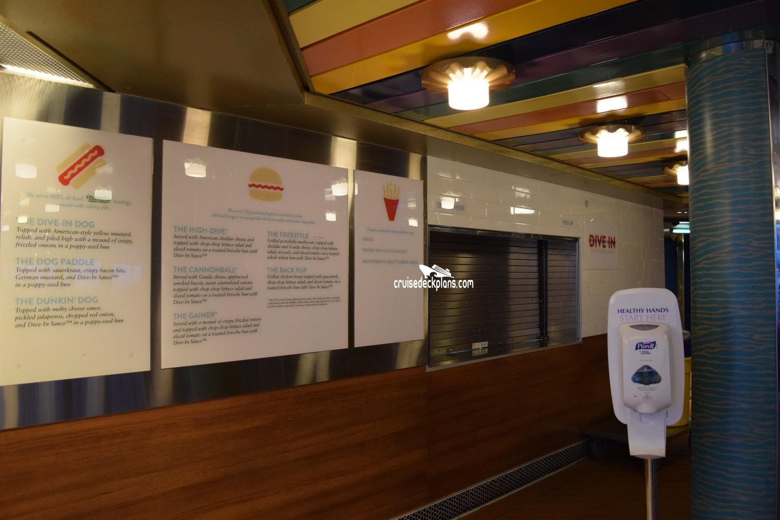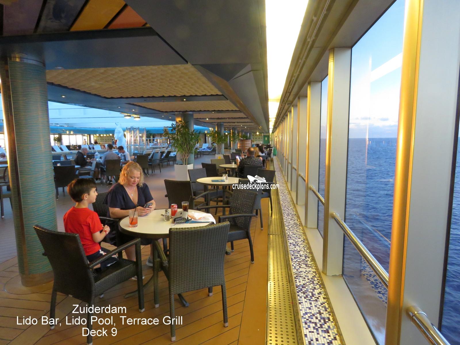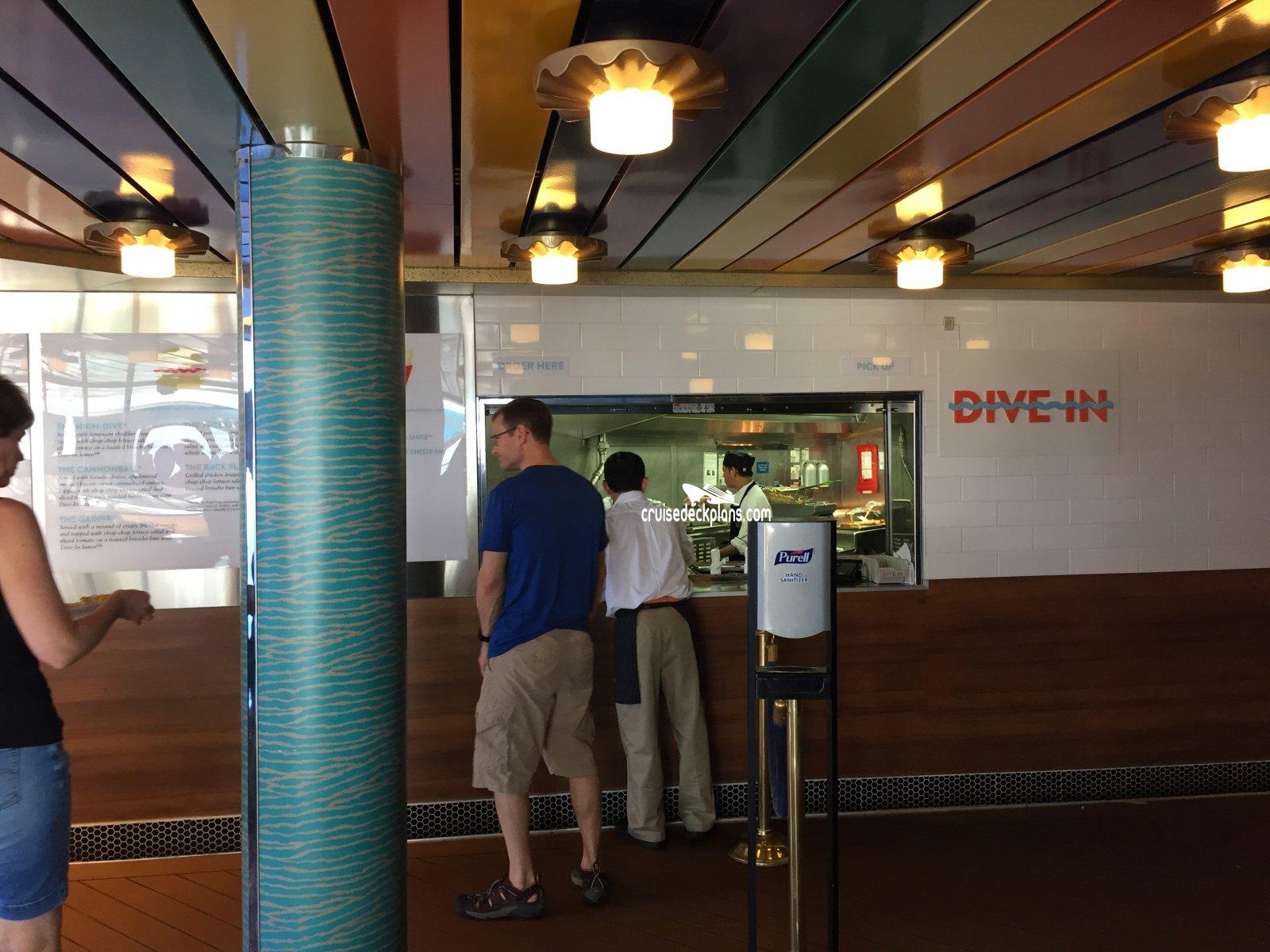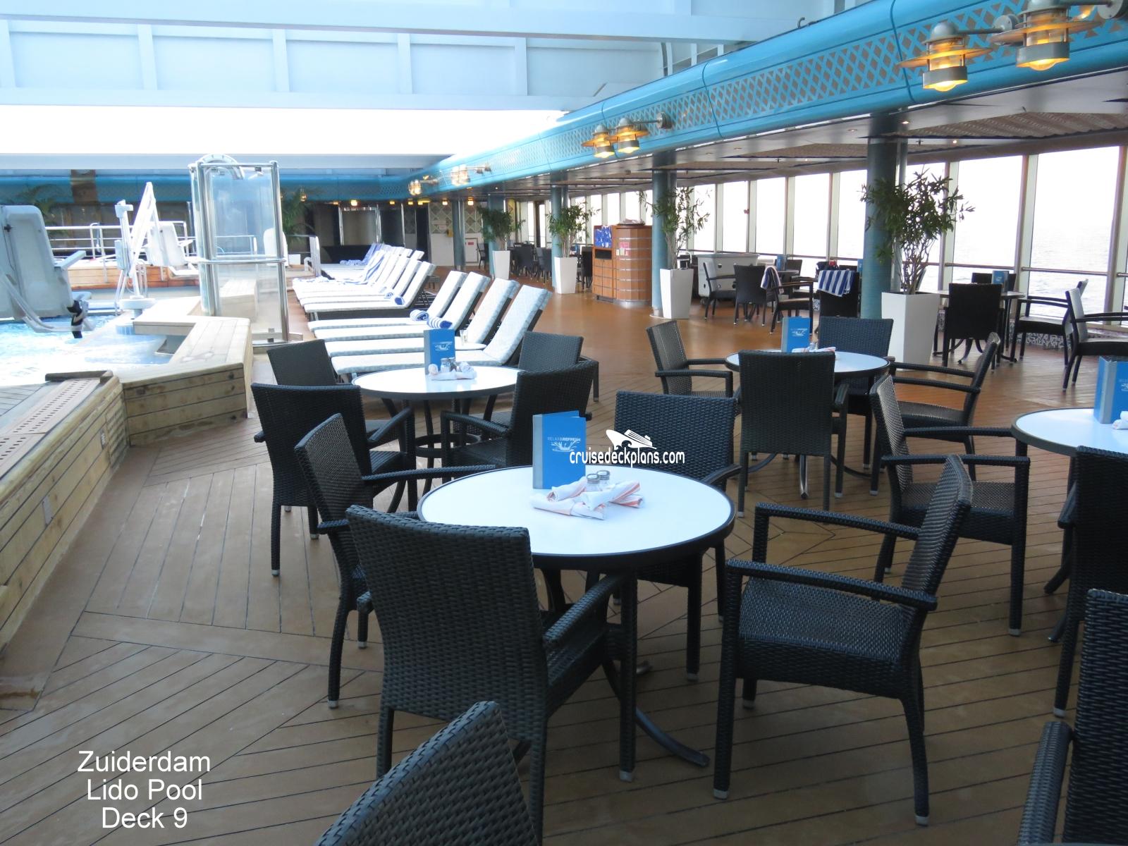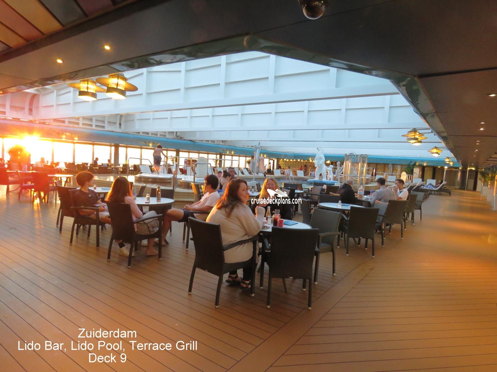 Zuiderdam Dive-In is located on Lido (deck). We have provided the deck plan image for your reference.