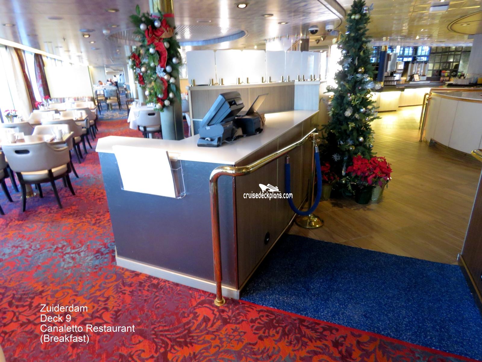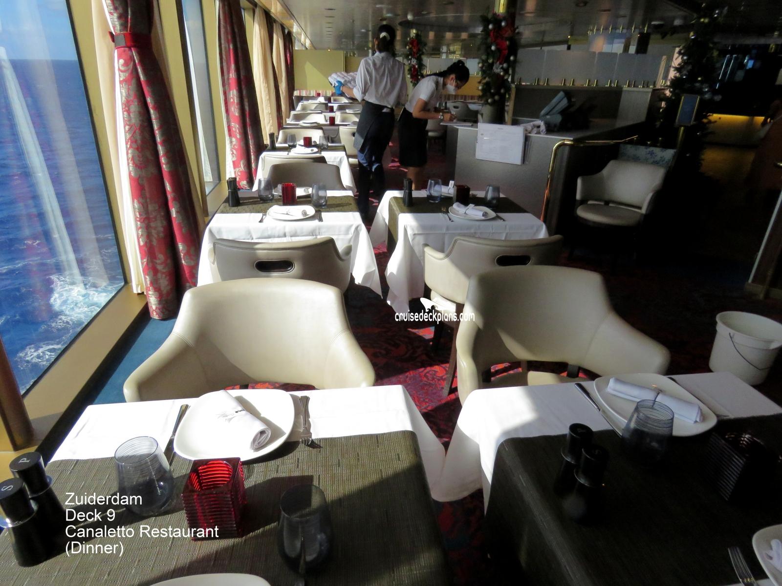 This page shows actual pictures for Zuiderdam Canaletto Restaurant. Most of our pictures are contributed by actual cruisers. You will find that all the Zuiderdam Canaletto Restaurant pictures on this page also posted directly onto our deck plans near the actual location the photo was taken. You can browse the pictures here or you can click on them as you are viewing the Zuiderdam deck plans. For deck plan viewing click on the ship button above or scroll down to view the pictures on this page.