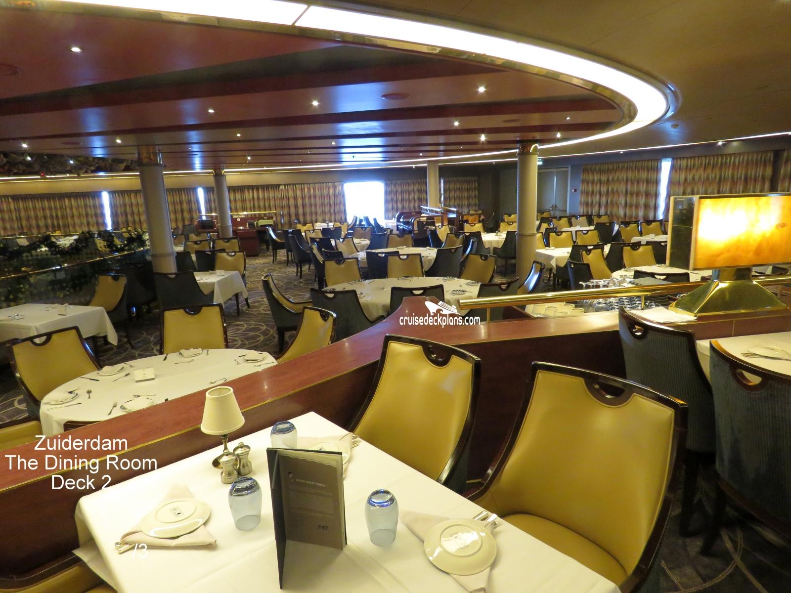 Zuiderdam Vista Dining Room is located on Lower Promenade (deck). We have provided the deck plan image for your reference.