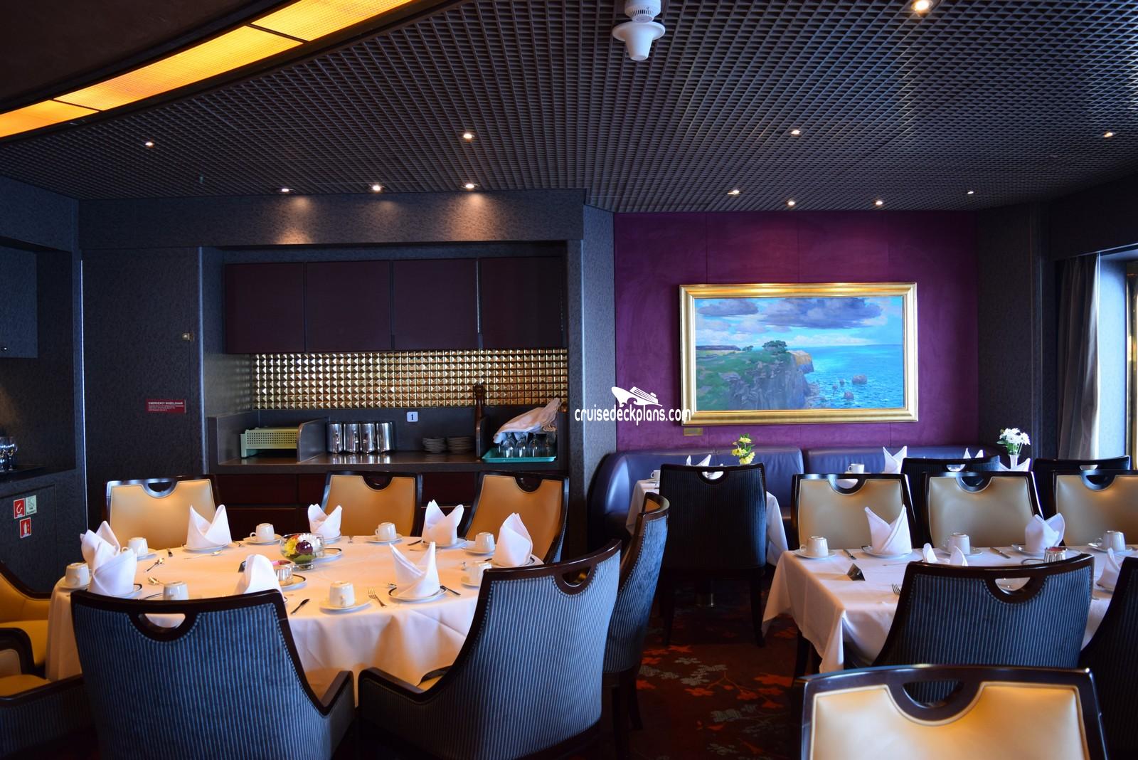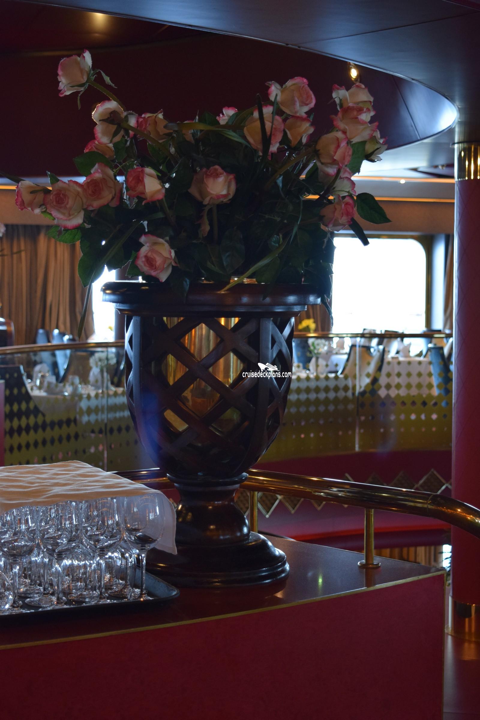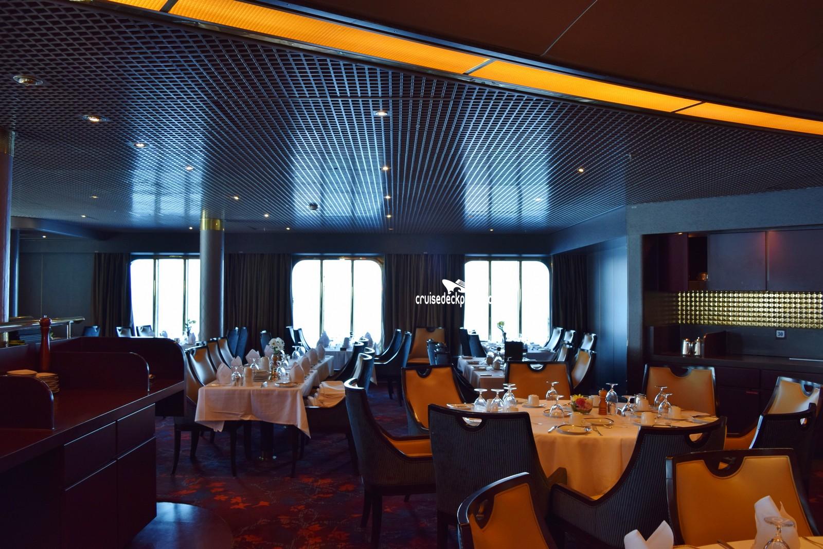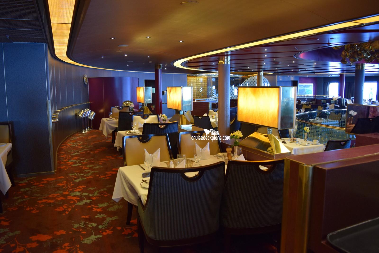 The ship's Main Dining Room located over 2 tiers on decks 2 and 3. Open for breakfast, lunch, afternoon tea and dinner, the restaurant offers a choice of either traditional pre-set seating and dining times or the ships "As You Wish" freedom dining.