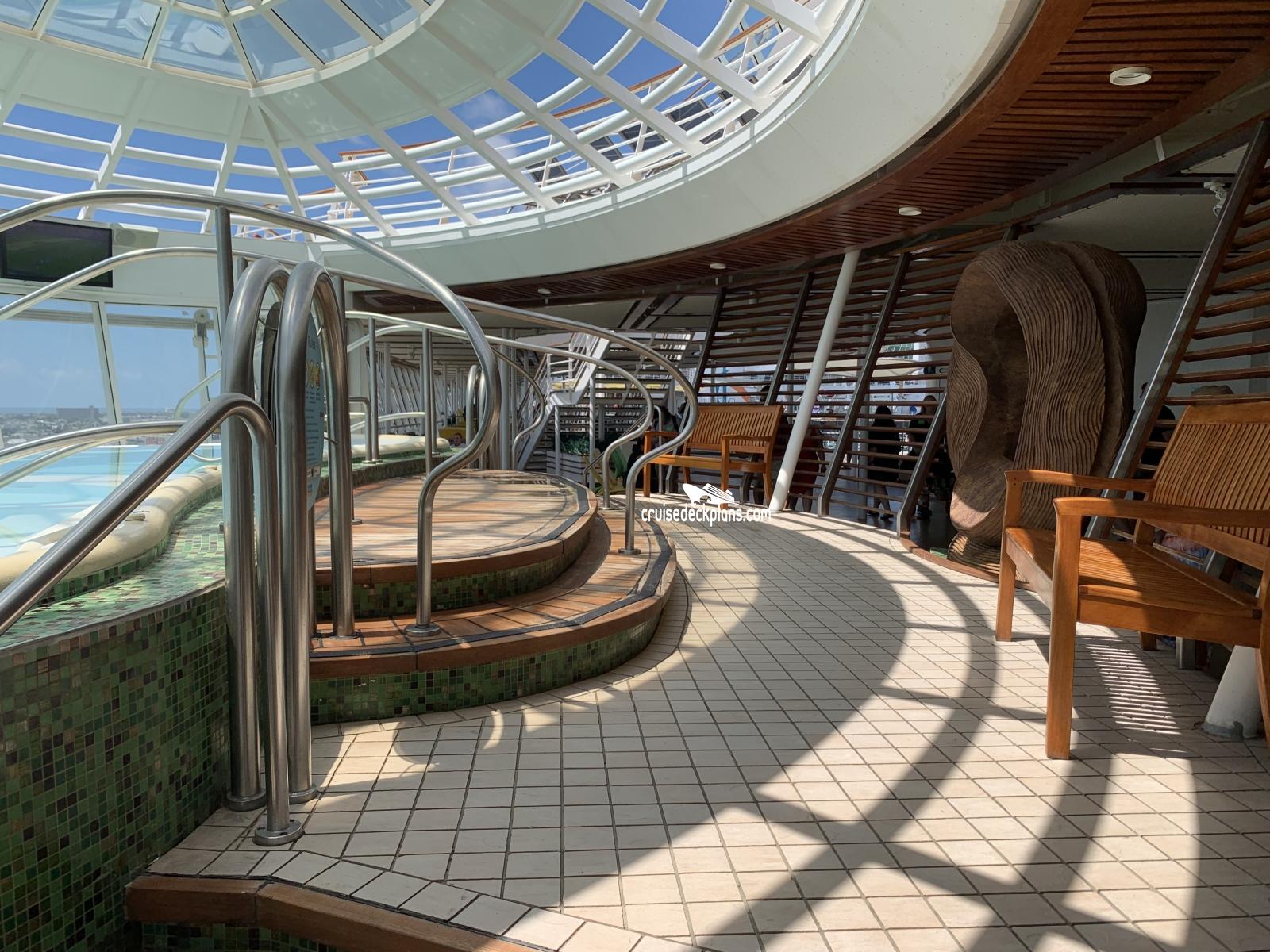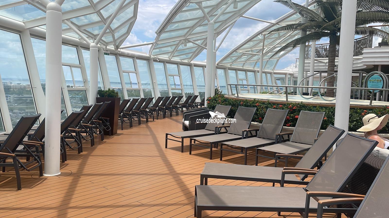 This page shows actual pictures for Allure of the Seas Solarium. Most of our pictures are contributed by actual cruisers. You will find that all the Allure of the Seas Solarium pictures on this page also posted directly onto our deck plans near the actual location the photo was taken. You can browse the pictures here or you can click on them as you are viewing the Allure of the Seas deck plans. For deck plan viewing click on the ship button above or scroll down to view the pictures on this page.