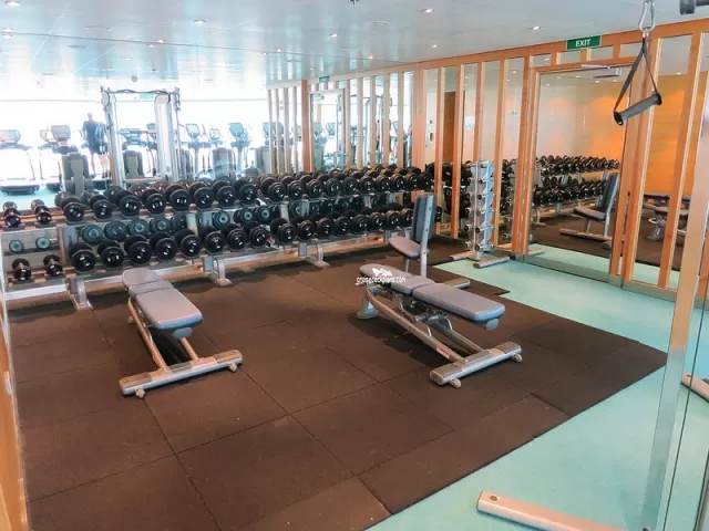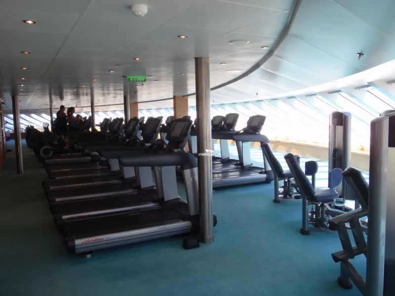 Spa and fitness area with reception area, 2 saunas, changing rooms, treatment rooms, VIP suites, Thalassotherapy pool, Thermal suites, and fitness studio. 2 Levels. Fitness Center hours typically from 6:00 a.m. to 10:00 p.m. Spa opens at 8:00 a.m.