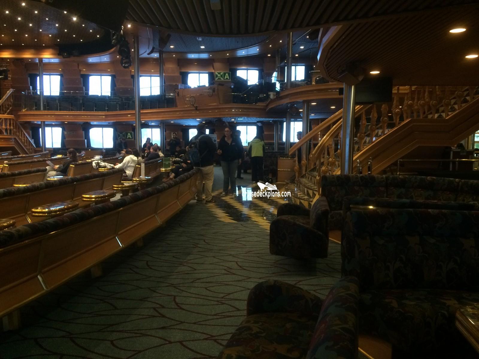This page shows actual pictures for Carnival Imagination Dynasty Main Lounge. Most of our pictures are contributed by actual cruisers. You will find that all the Carnival Imagination Dynasty Main Lounge pictures on this page also posted directly onto our deck plans near the actual location the photo was taken. You can browse the pictures here or you can click on them as you are viewing the Carnival Imagination deck plans. For deck plan viewing click on the ship button above or scroll down to view the pictures on this page.