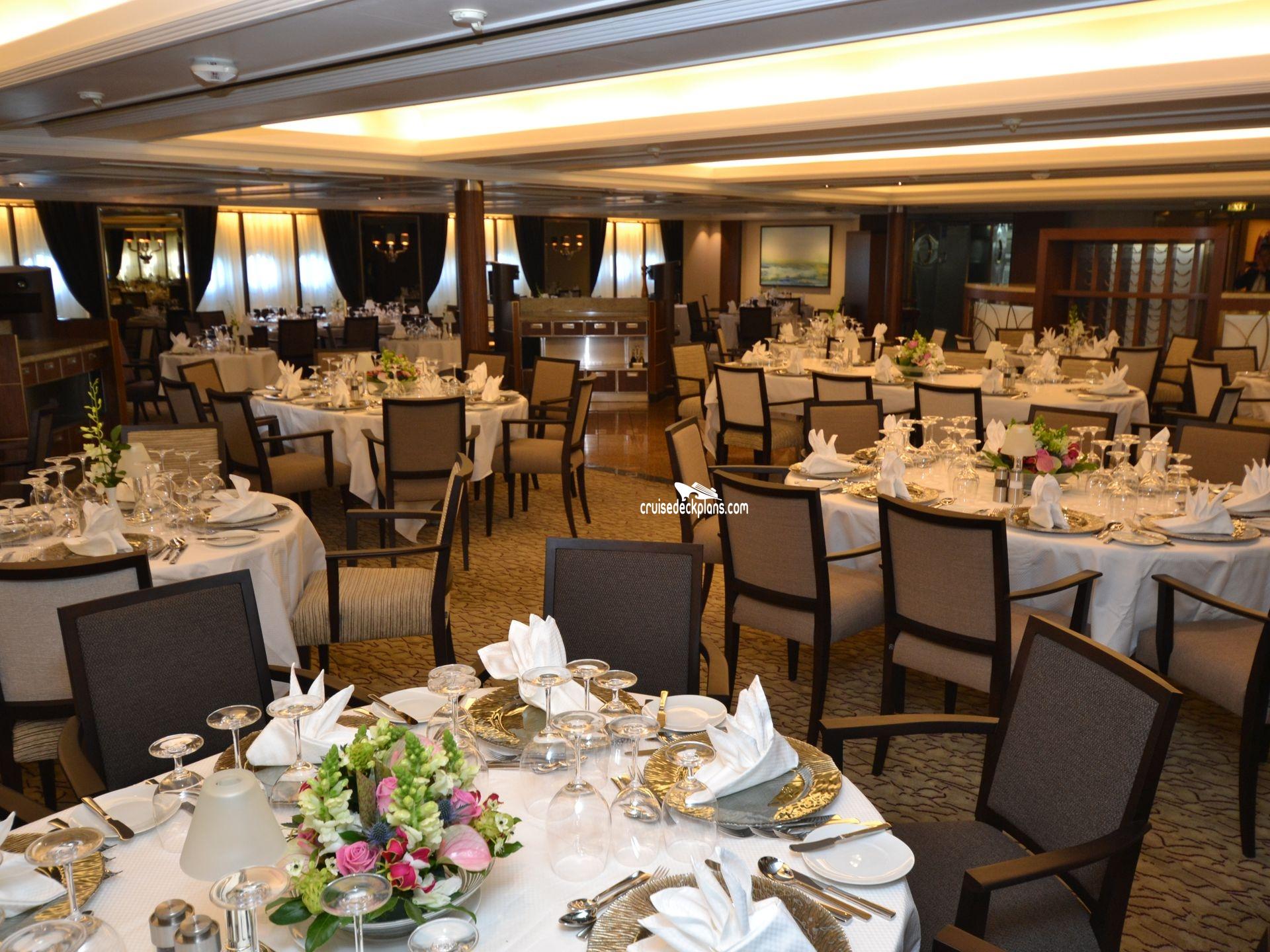 Main dining room (open seating) located midship.