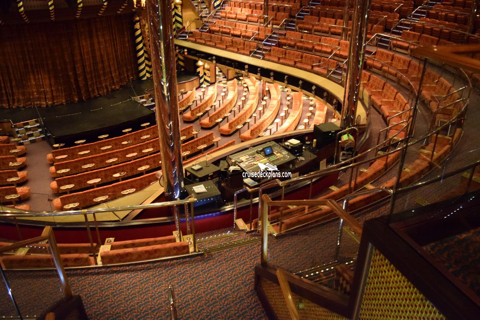The ship's main 3 level show lounge with a seating capacity of 1400.