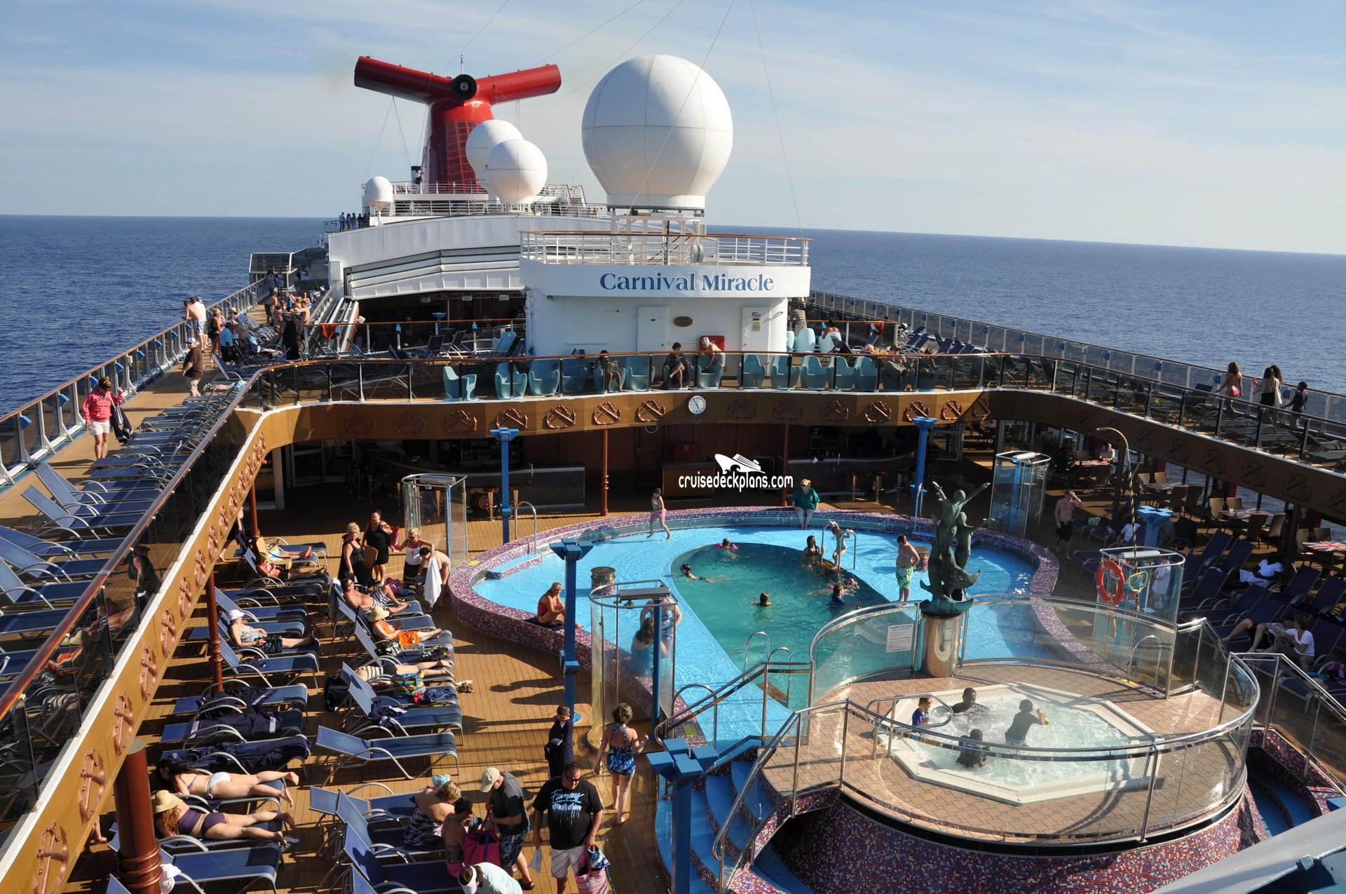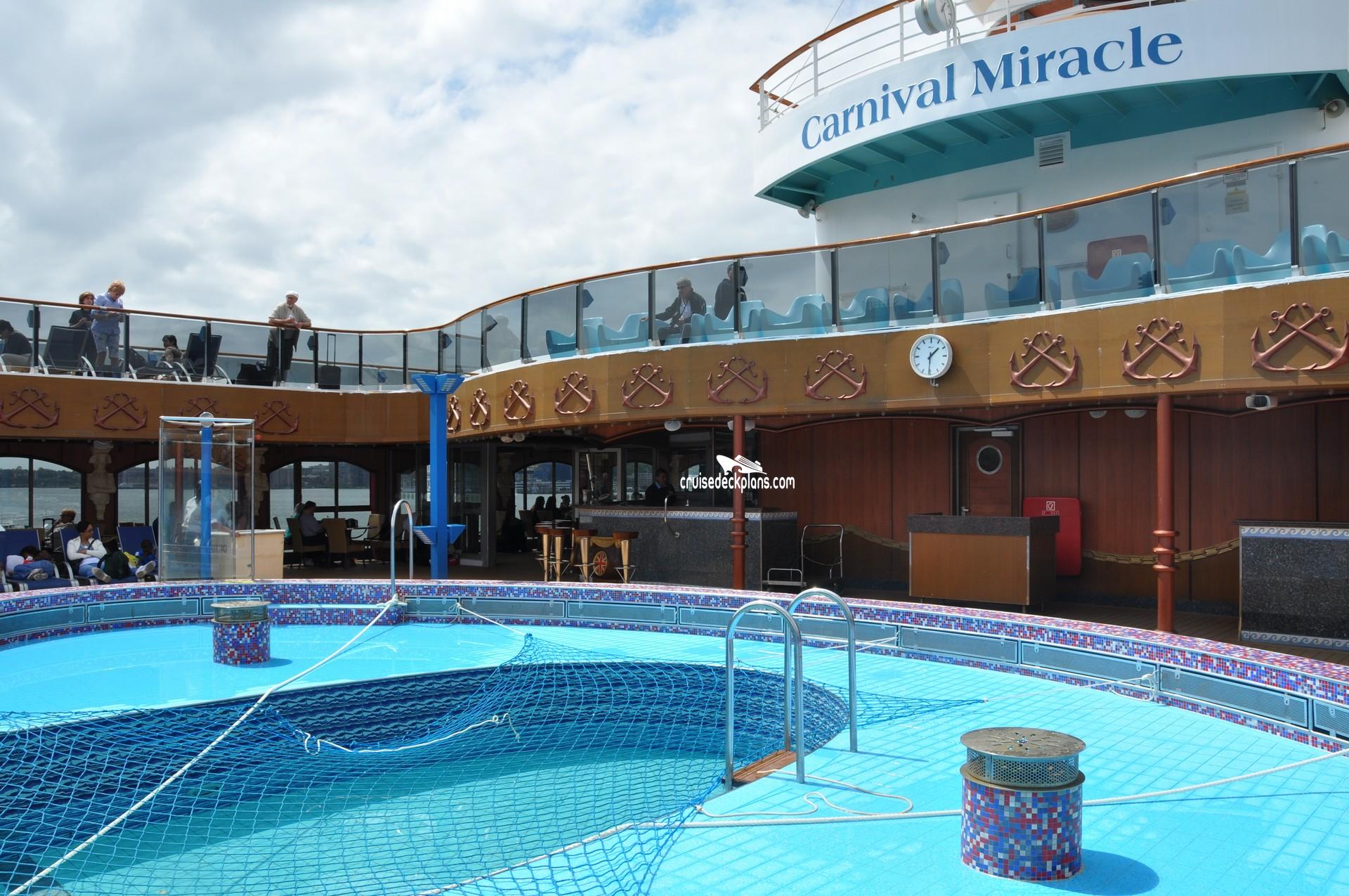 This page shows actual pictures for Carnival Miracle Sirens Forward Pool. Most of our pictures are contributed by actual cruisers. You will find that all the Carnival Miracle Sirens Forward Pool pictures on this page also posted directly onto our deck plans near the actual location the photo was taken. You can browse the pictures here or you can click on them as you are viewing the Carnival Miracle deck plans. For deck plan viewing click on the ship button above or scroll down to view the pictures on this page.