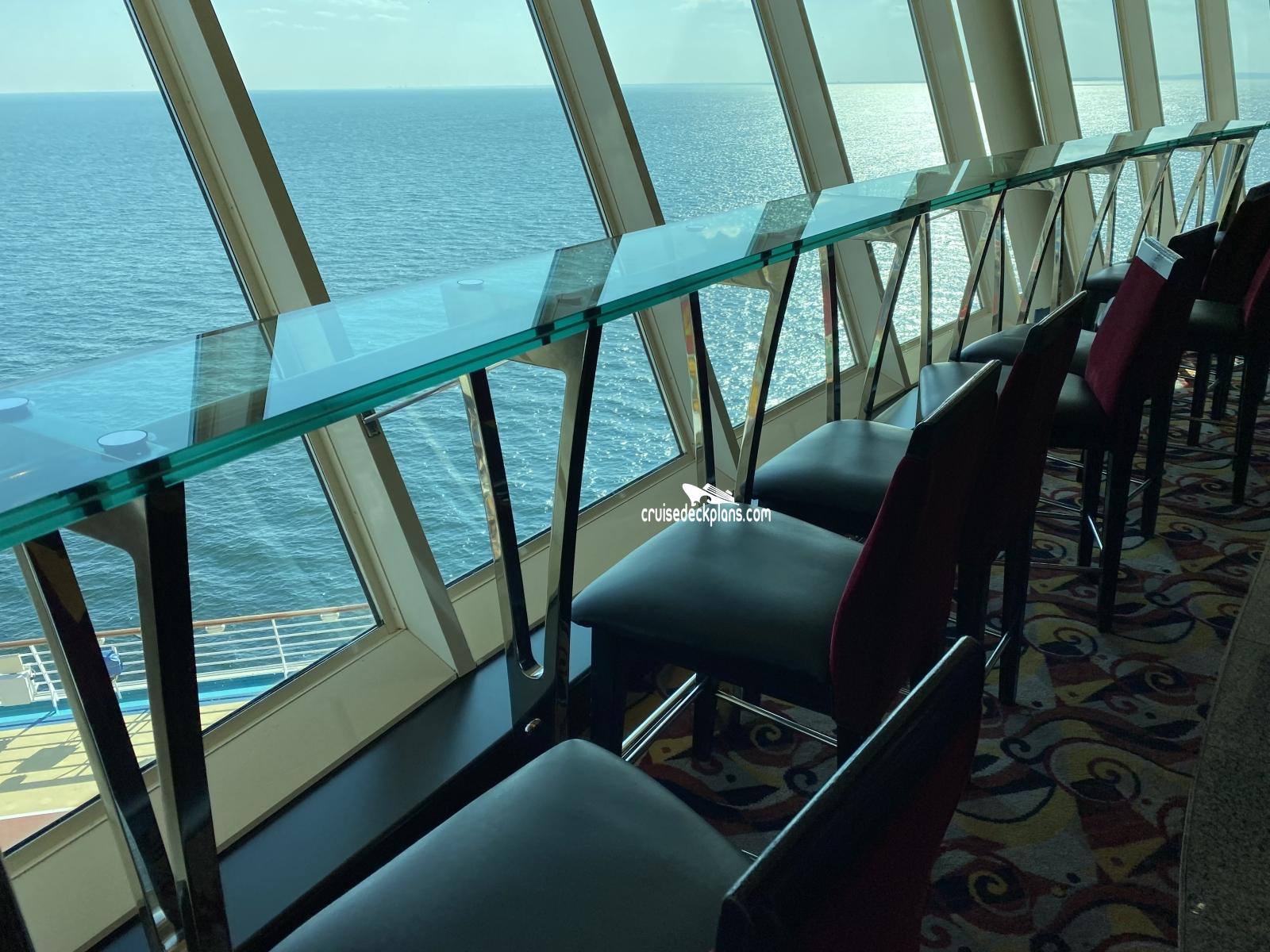 Viewing lounge on deck 14, seats 134. Includes Olive or Twist lounge. which is open to adults aged 21 and over only with a seating capacity of 45, guests can enjoy cocktails and classic from the ships Elegance Trio along with late night jazz.