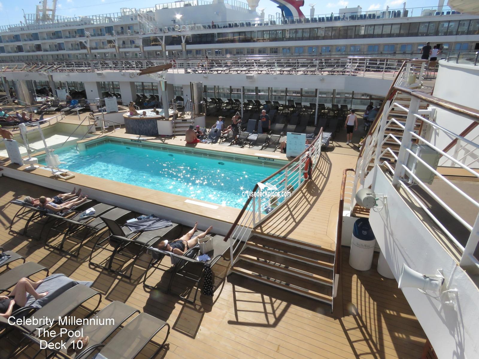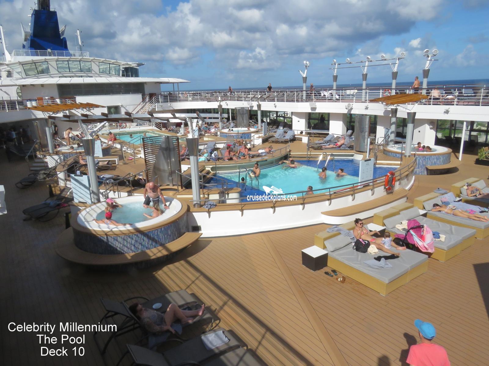 This page shows actual pictures for Celebrity Millennium Main Pools. Most of our pictures are contributed by actual cruisers. You will find that all the Celebrity Millennium Main Pools pictures on this page also posted directly onto our deck plans near the actual location the photo was taken. You can browse the pictures here or you can click on them as you are viewing the Celebrity Millennium deck plans. For deck plan viewing click on the ship button above or scroll down to view the pictures on this page.