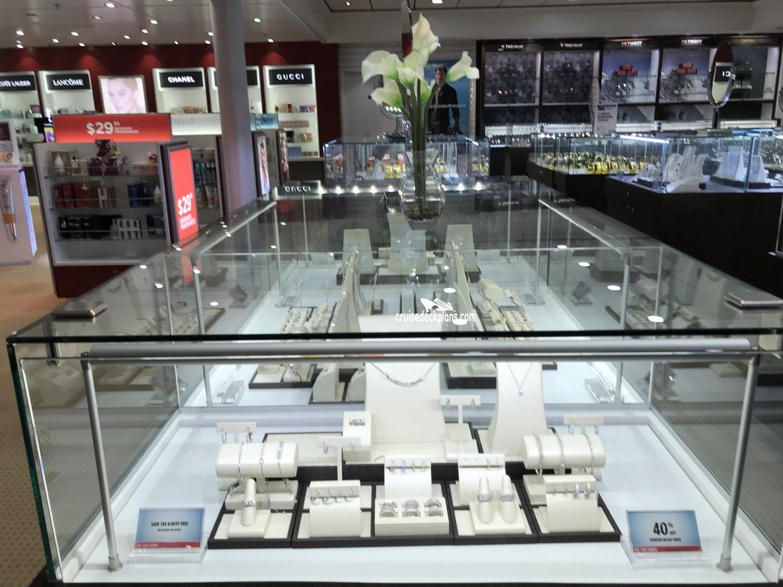 A selection of boutiques and duty free shops with items ranging from clothes, jewelry and spa products to souvenirs and duty free alcohol.