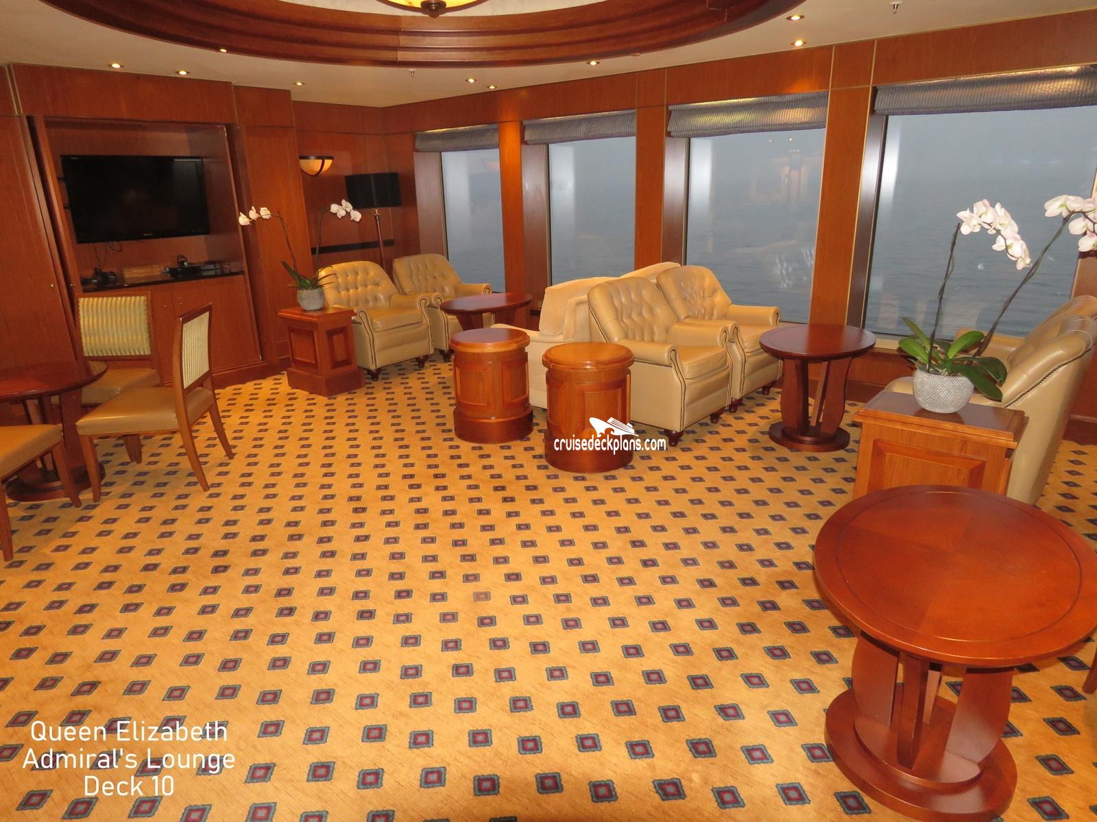 Queen Elizabeth Admirals Lounge is located on Deck 10 (deck). We have provided the deck plan image for your reference.