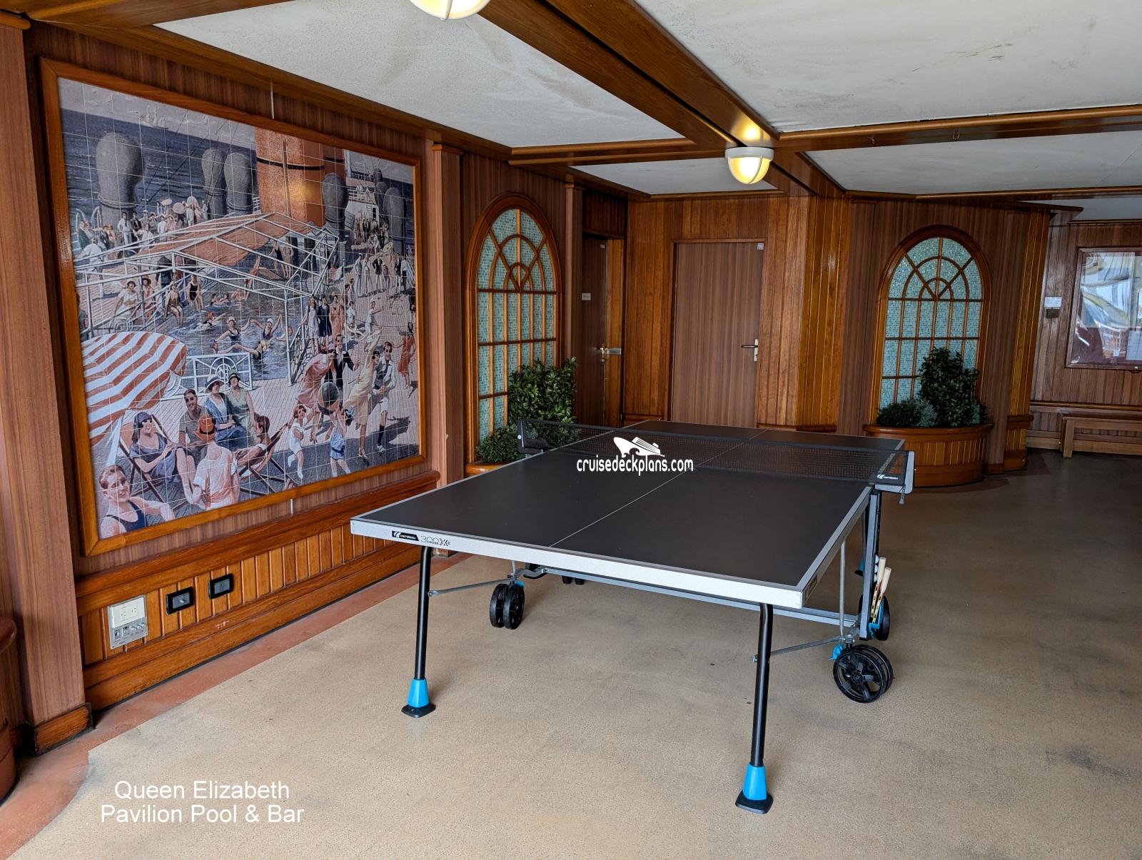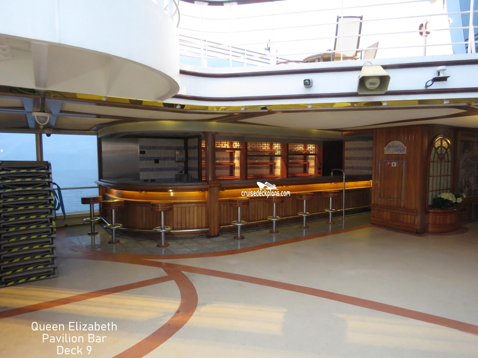 Queen Elizabeth Pavlion Pool is located on Deck 9 (deck). We have provided the deck plan image for your reference.