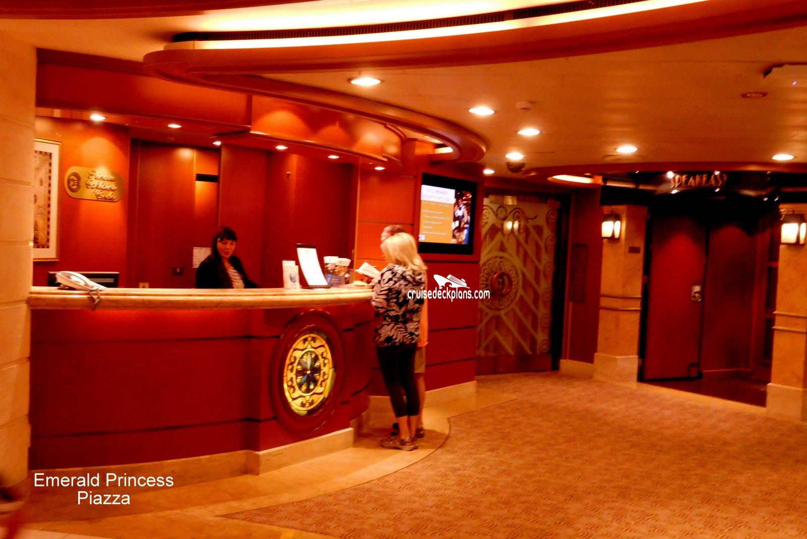 This page shows actual pictures for Emerald Princess Circle Desk. Most of our pictures are contributed by actual cruisers. You will find that all the Emerald Princess Circle Desk pictures on this page also posted directly onto our deck plans near the actual location the photo was taken. You can browse the pictures here or you can click on them as you are viewing the Emerald Princess deck plans. For deck plan viewing click on the ship button above or scroll down to view the pictures on this page.