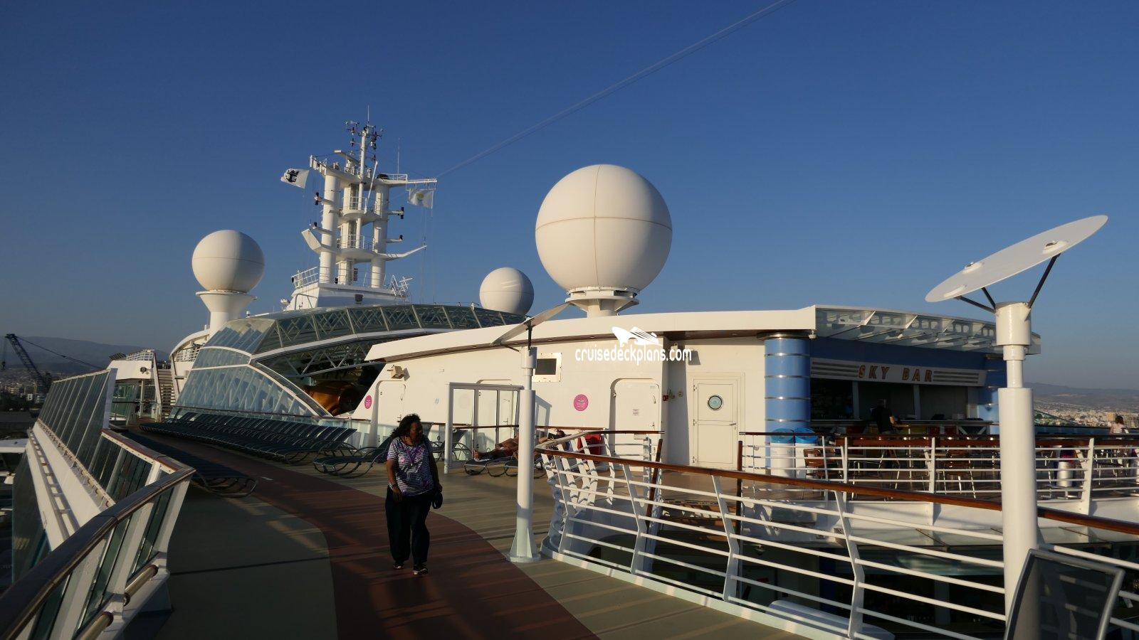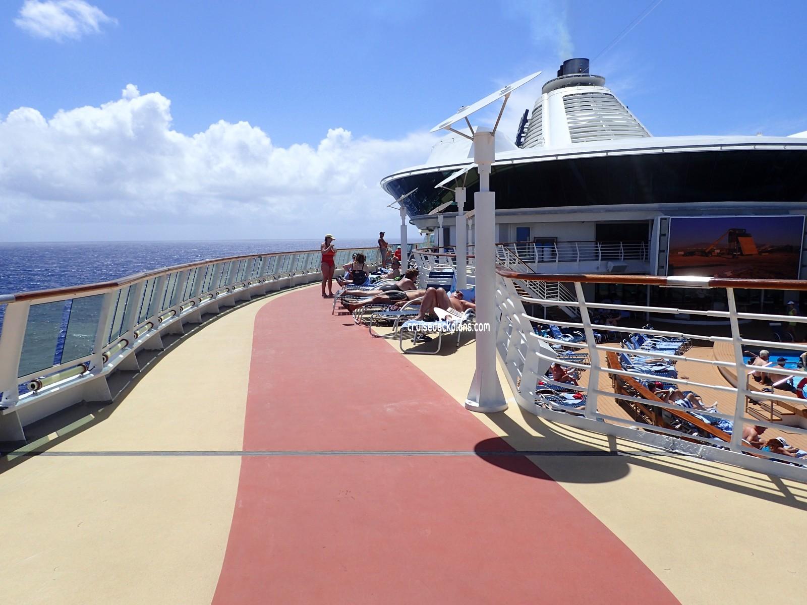 This page shows actual pictures for Jewel of the Seas Jogging Track. Most of our pictures are contributed by actual cruisers. You will find that all the Jewel of the Seas Jogging Track pictures on this page also posted directly onto our deck plans near the actual location the photo was taken. You can browse the pictures here or you can click on them as you are viewing the Jewel of the Seas deck plans. For deck plan viewing click on the ship button above or scroll down to view the pictures on this page.
