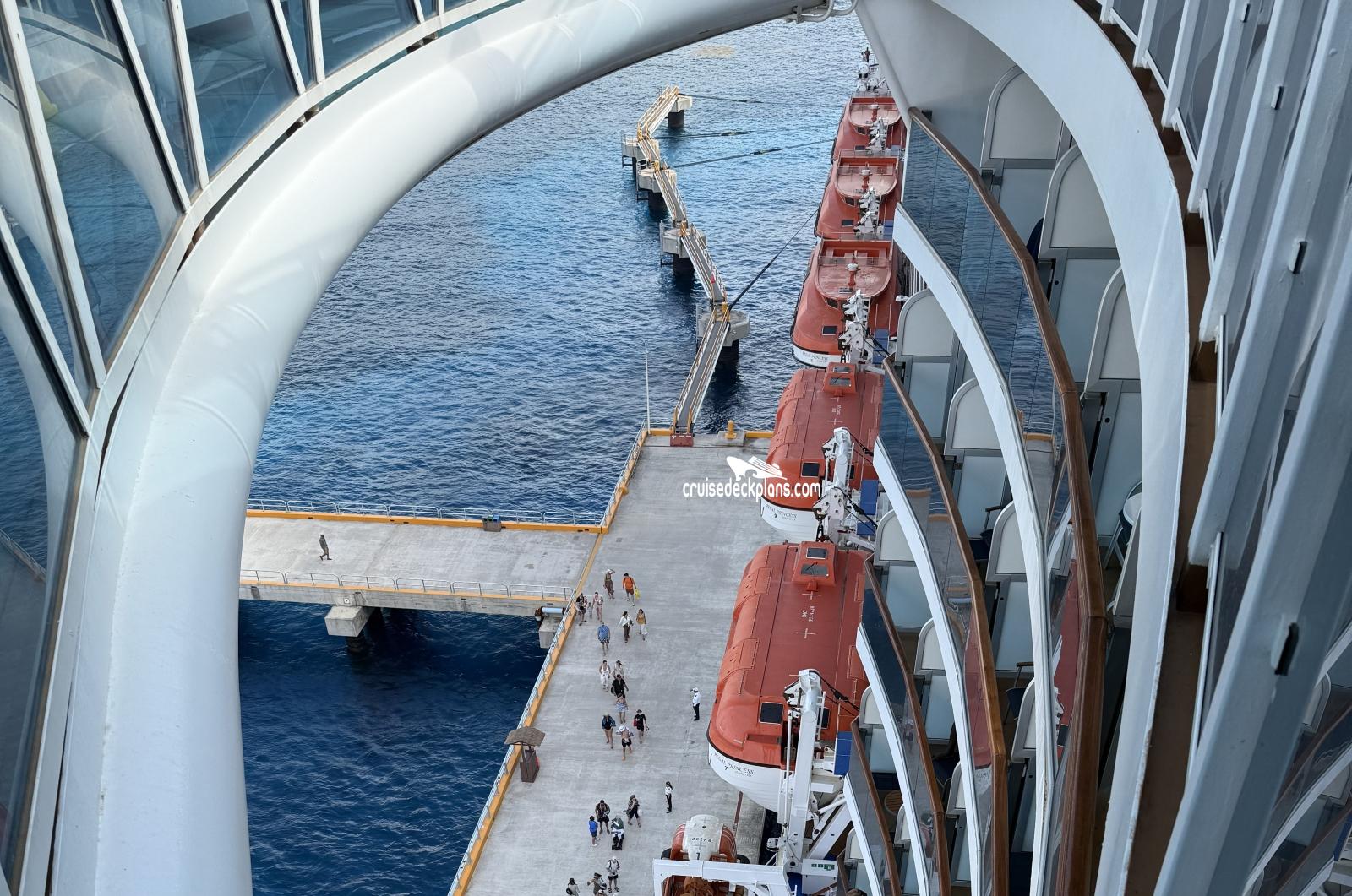 Two level high sea walk that extends out over side of the ship. The first level has a glass floor that allows you to view all the way down to the ocean.