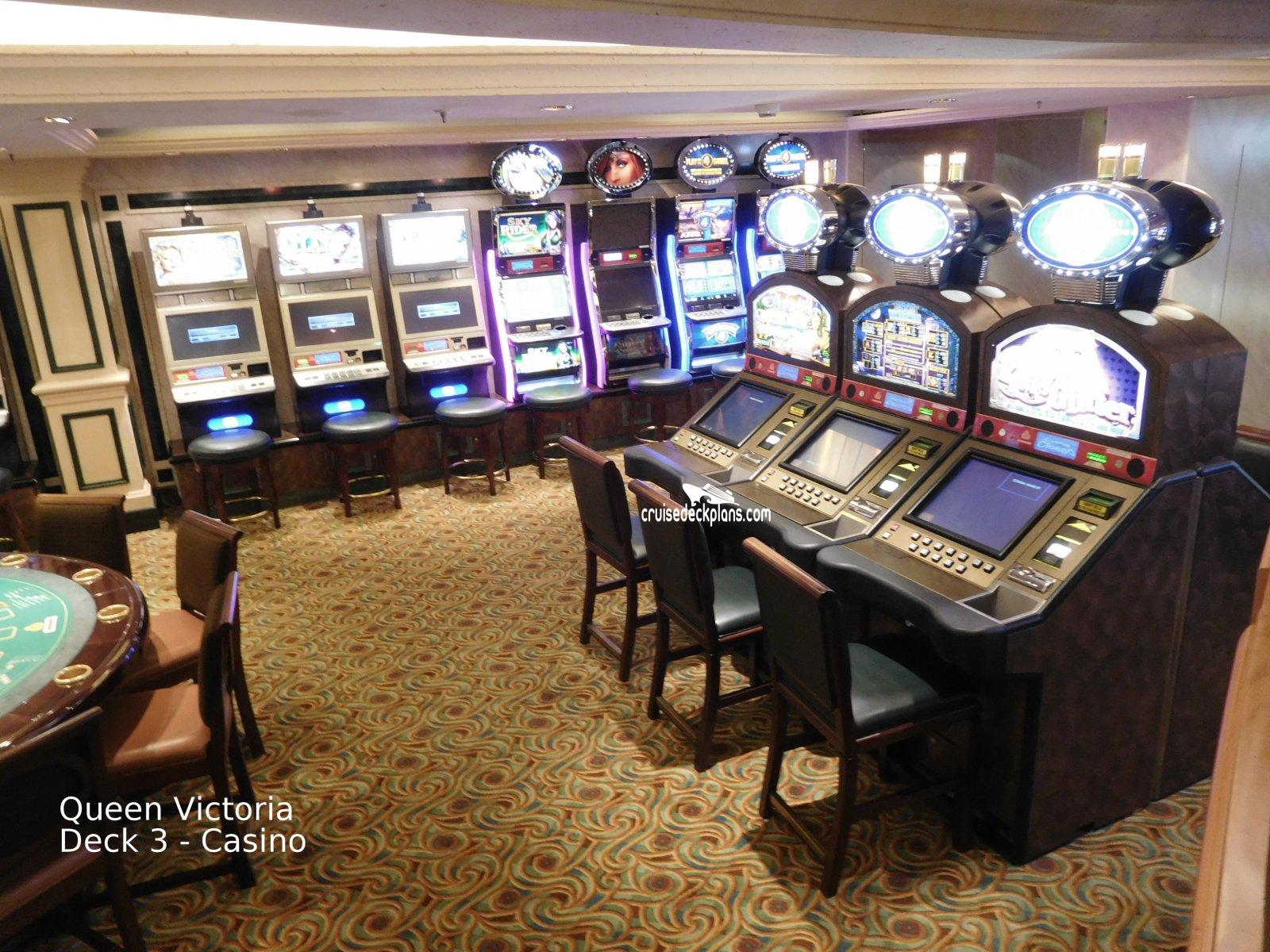 This page shows actual pictures for Queen Victoria Casino. Most of our pictures are contributed by actual cruisers. You will find that all the Queen Victoria Casino pictures on this page also posted directly onto our deck plans near the actual location the photo was taken. You can browse the pictures here or you can click on them as you are viewing the Queen Victoria deck plans. For deck plan viewing click on the ship button above or scroll down to view the pictures on this page.