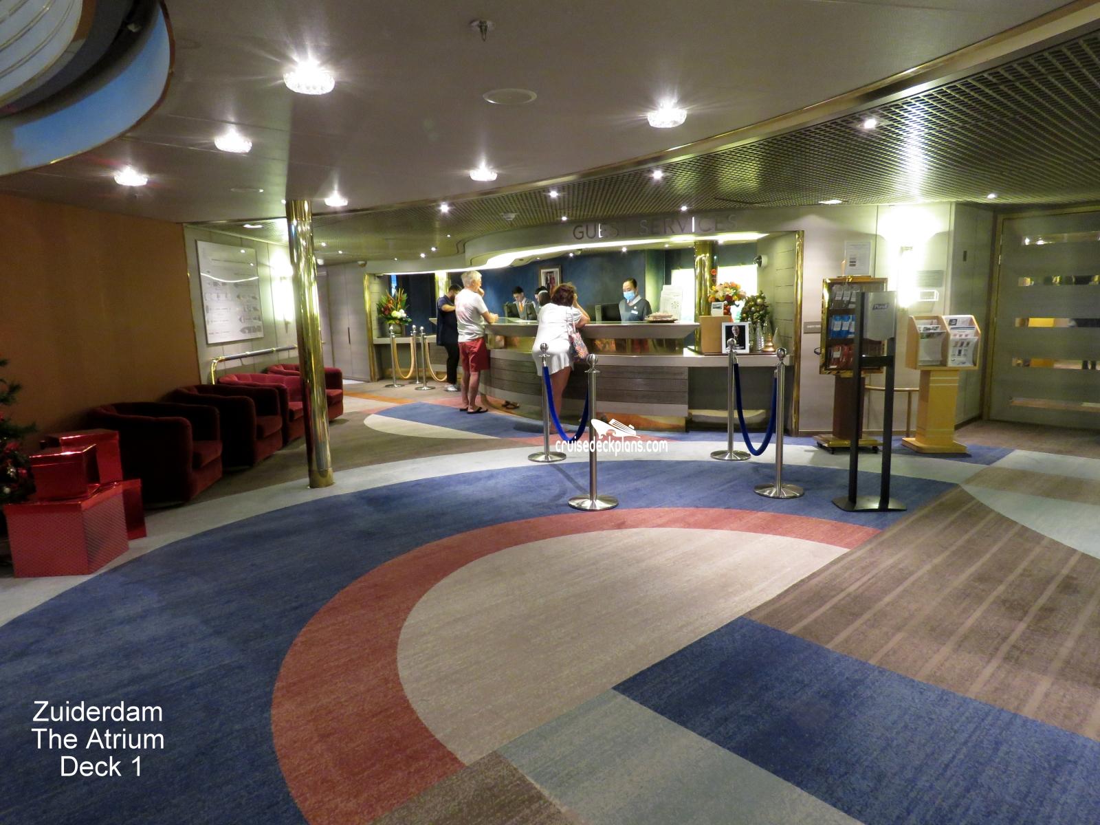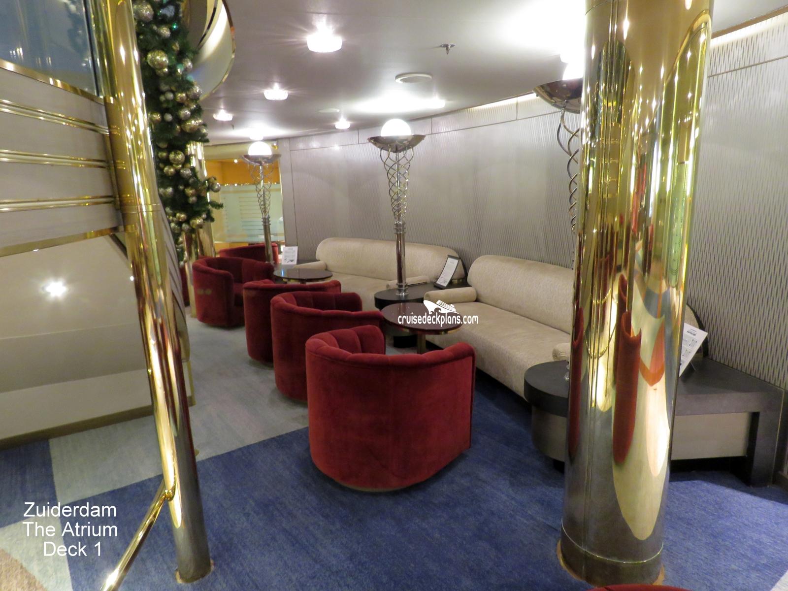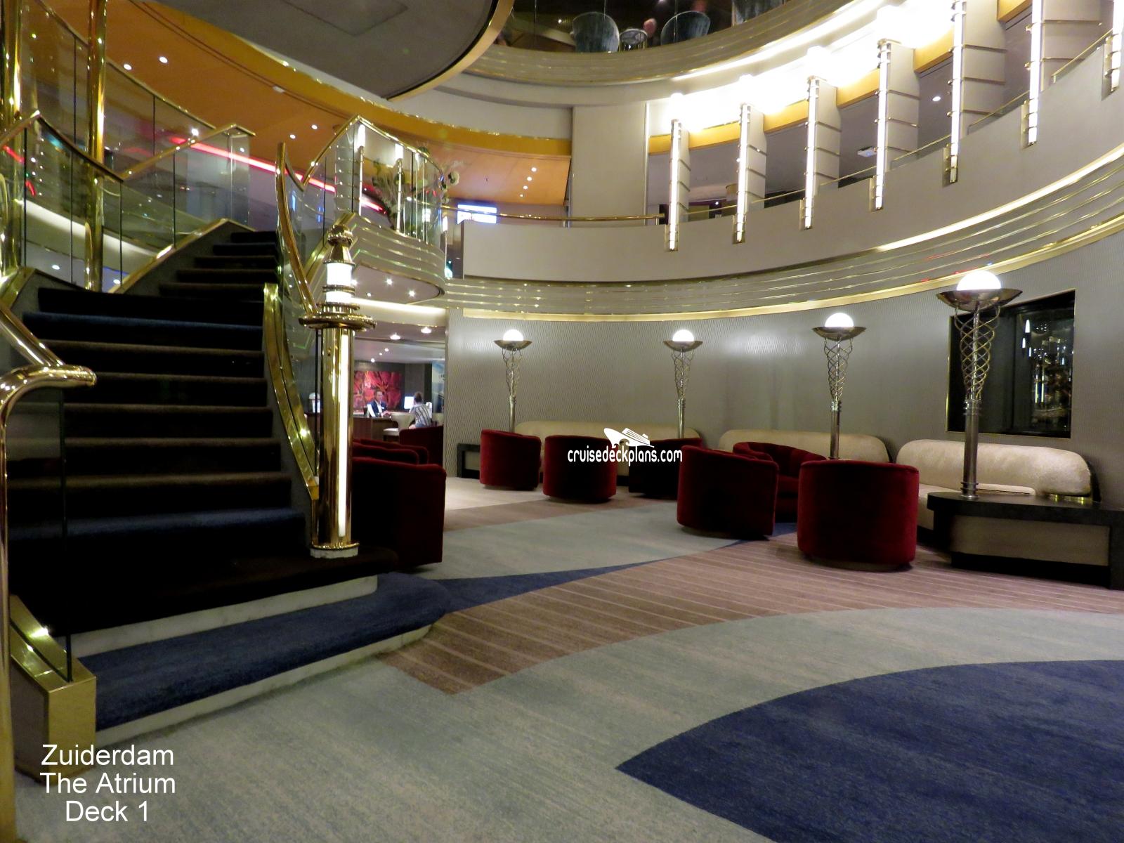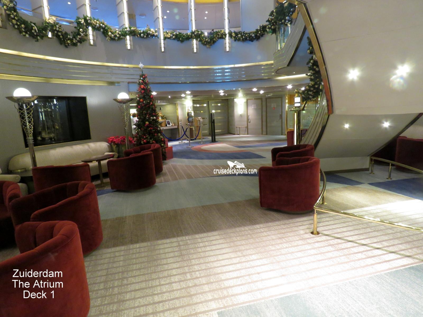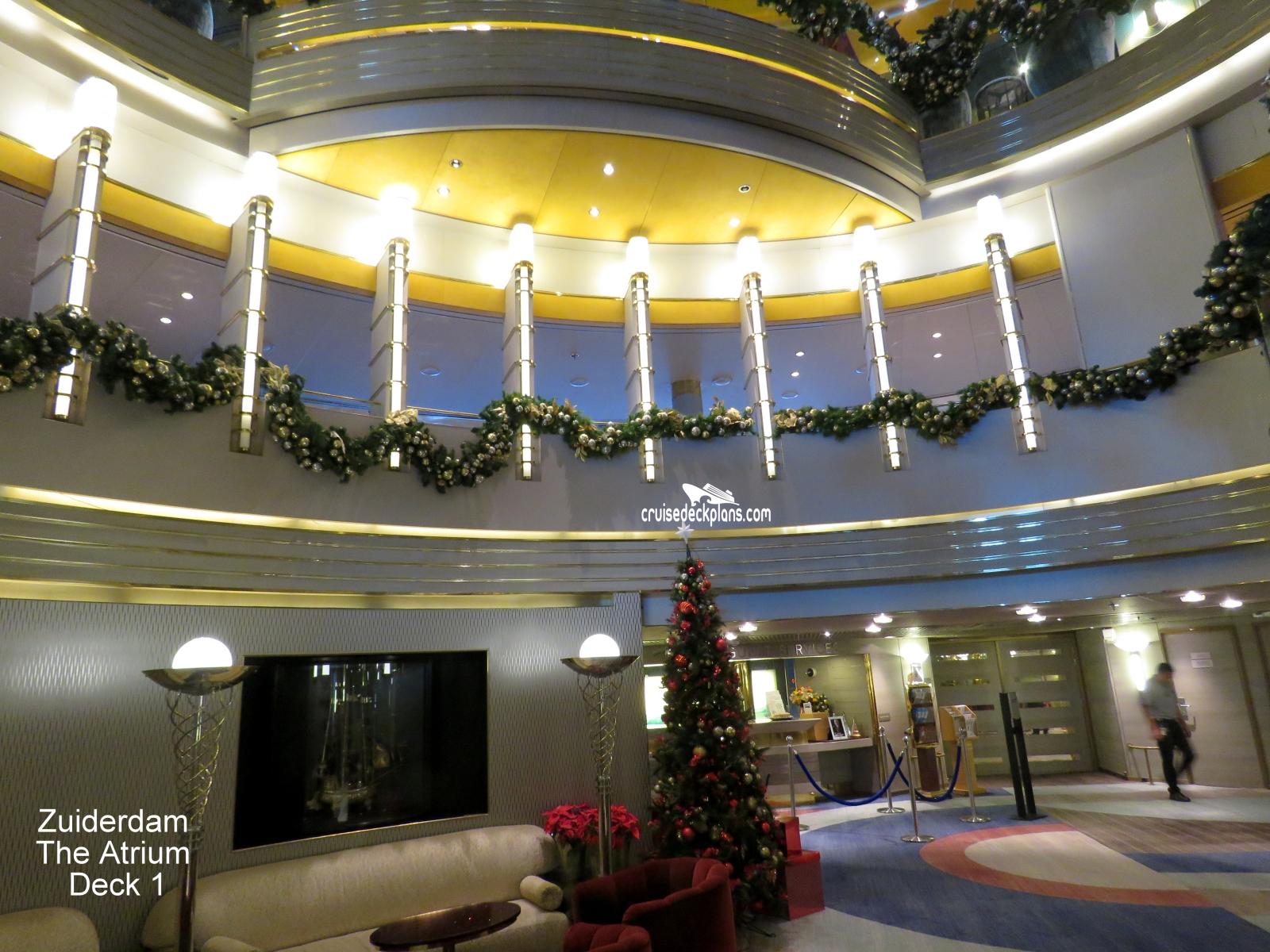 This page shows actual pictures for Zuiderdam The Atrium. Most of our pictures are contributed by actual cruisers. You will find that all the Zuiderdam The Atrium pictures on this page also posted directly onto our deck plans near the actual location the photo was taken. You can browse the pictures here or you can click on them as you are viewing the Zuiderdam deck plans. For deck plan viewing click on the ship button above or scroll down to view the pictures on this page.