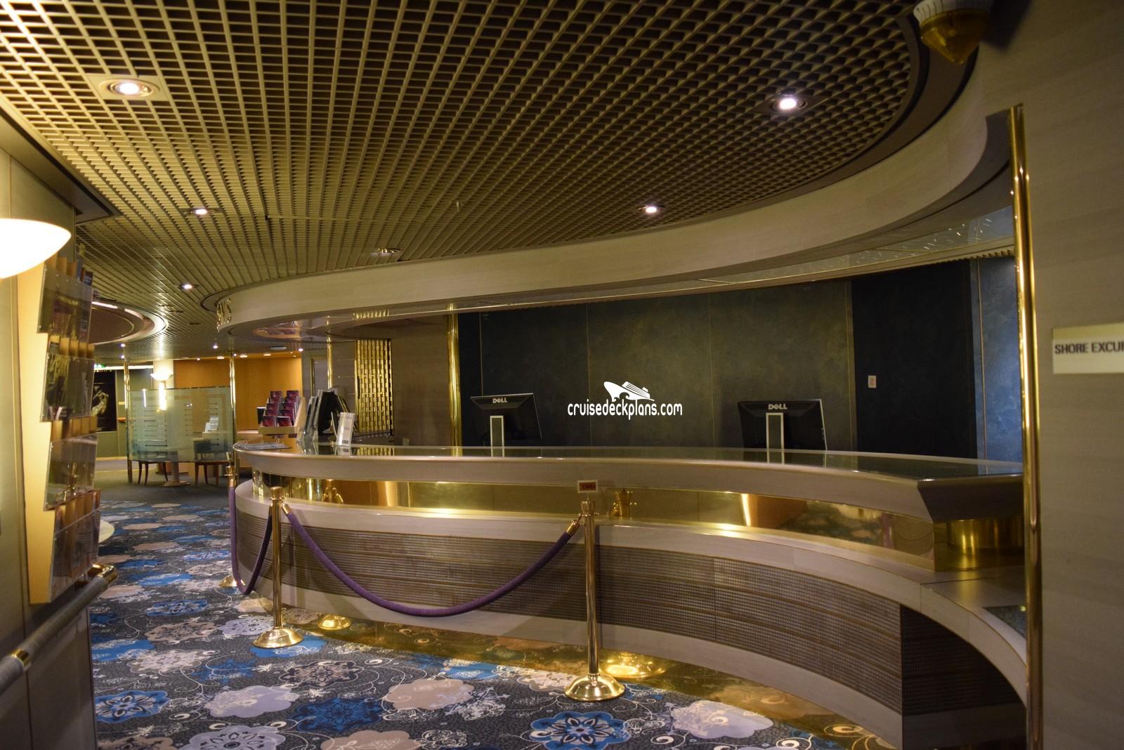 Ships atrium. On the first level is the Front Office and Shore Excursion desks