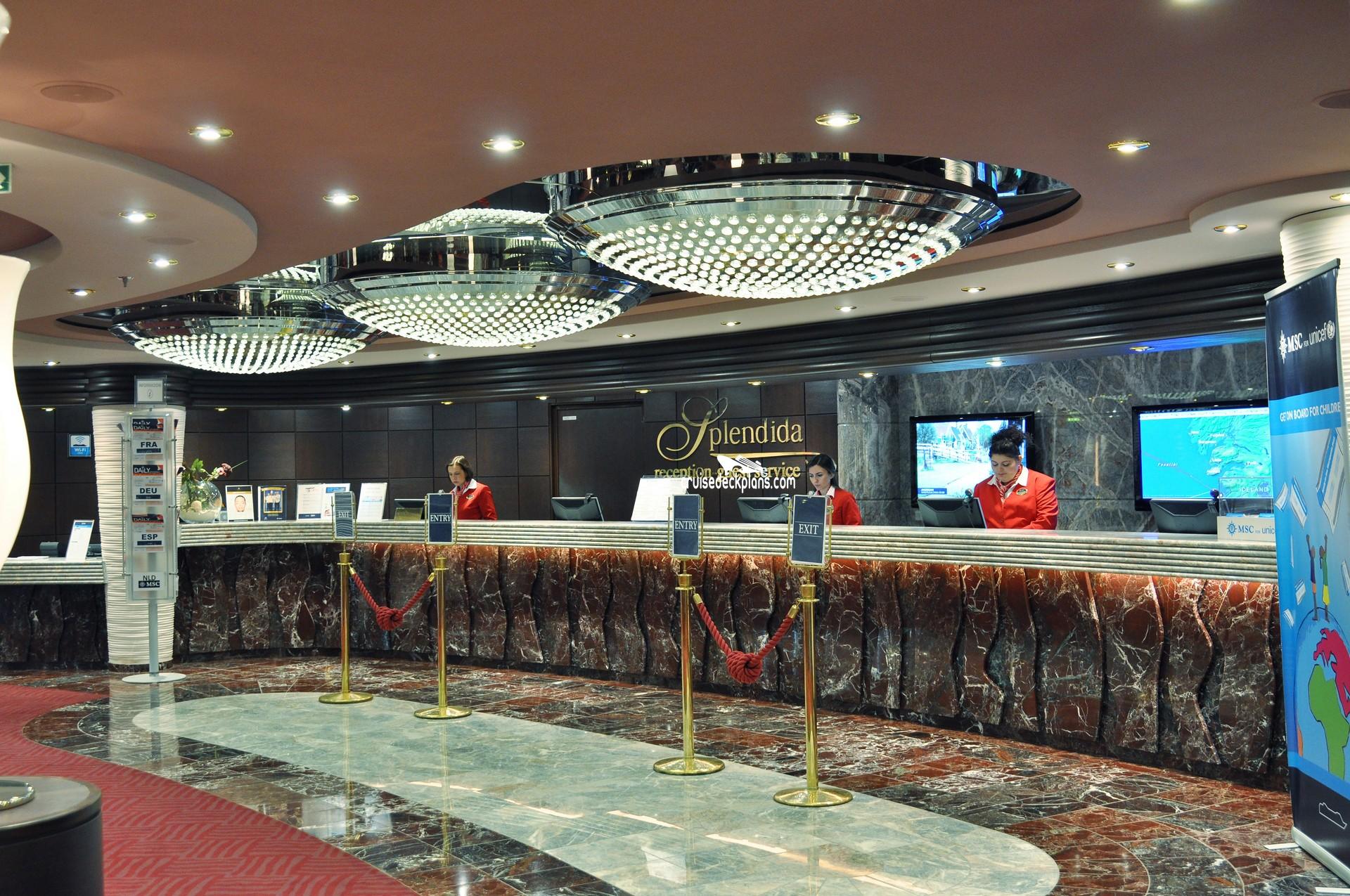 This page shows actual pictures for MSC Splendida Reception. Most of our pictures are contributed by actual cruisers. You will find that all the MSC Splendida Reception pictures on this page also posted directly onto our deck plans near the actual location the photo was taken. You can browse the pictures here or you can click on them as you are viewing the MSC Splendida deck plans. For deck plan viewing click on the ship button above or scroll down to view the pictures on this page.