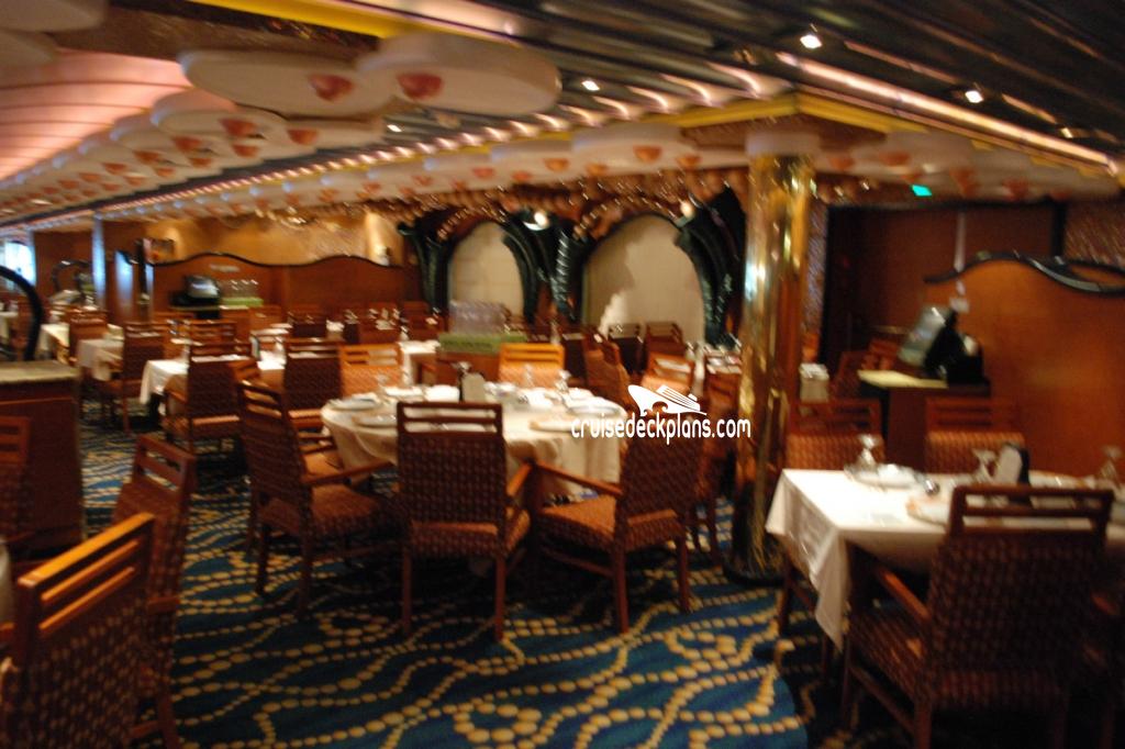 This page shows actual pictures for Carnival Splendor The Gold Pearl Restaurant. Most of our pictures are contributed by actual cruisers. You will find that all the Carnival Splendor The Gold Pearl Restaurant pictures on this page also posted directly onto our deck plans near the actual location the photo was taken. You can browse the pictures here or you can click on them as you are viewing the Carnival Splendor deck plans. For deck plan viewing click on the ship button above or scroll down to view the pictures on this page.