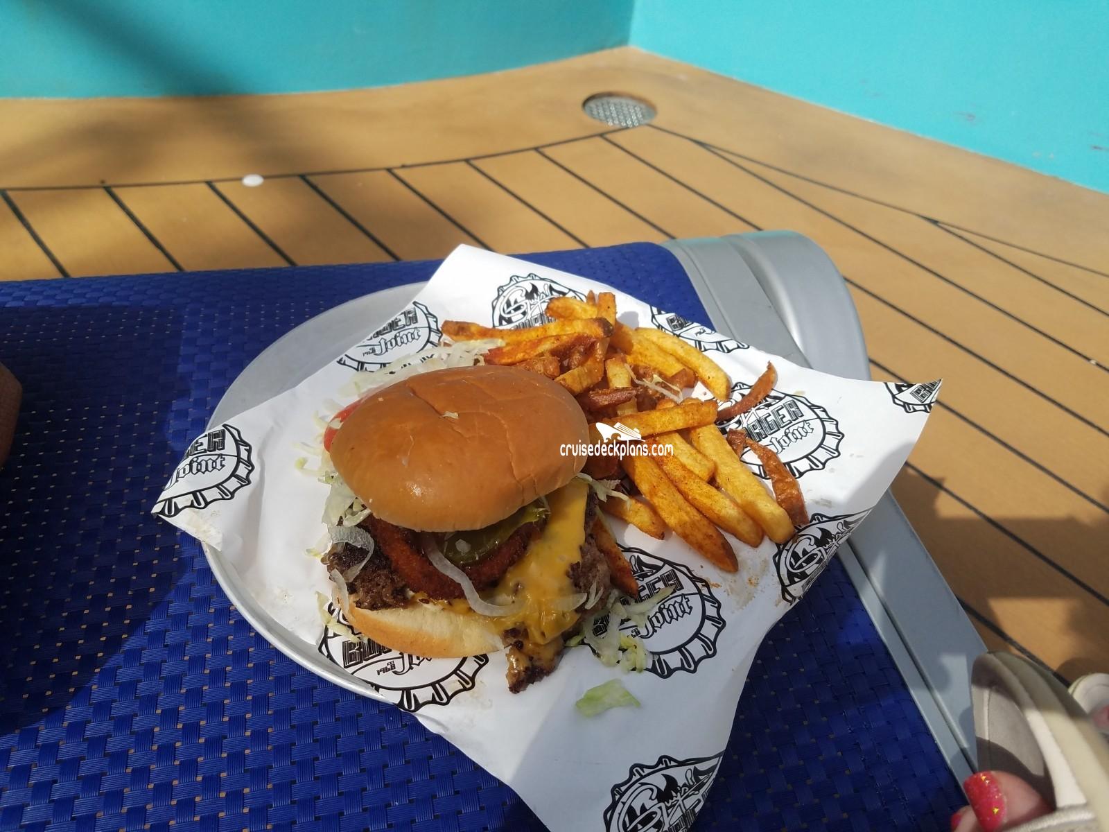 Carnival has teamed up with best-selling author, restaurateur and Food Network personality Guy Fieri to bring all the authentic appeal of a roadside burger shack to Guys Burger Joint, the cool poolside spot for hot burgers and hand-cut fries. Hours typically 12:00 p.m. to 6:00 p.m.