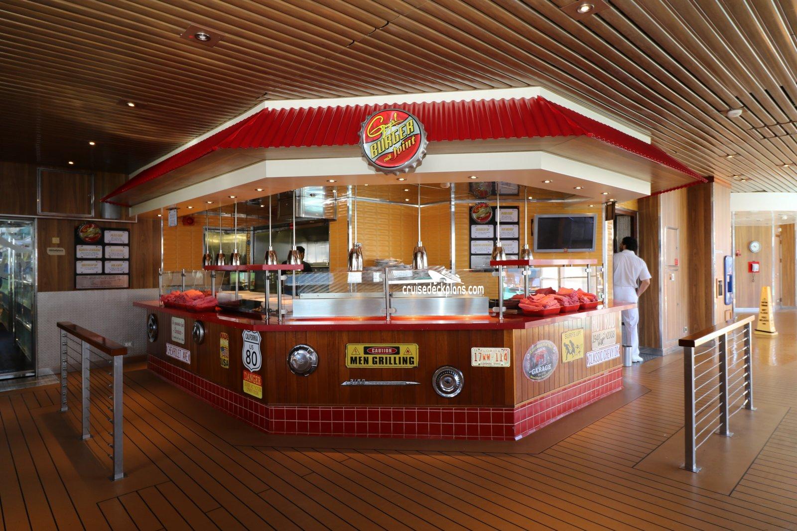 This page shows actual pictures for Carnival Magic Guys Burger Joint. Most of our pictures are contributed by actual cruisers. You will find that all the Carnival Magic Guys Burger Joint pictures on this page also posted directly onto our deck plans near the actual location the photo was taken. You can browse the pictures here or you can click on them as you are viewing the Carnival Magic deck plans. For deck plan viewing click on the ship button above or scroll down to view the pictures on this page.