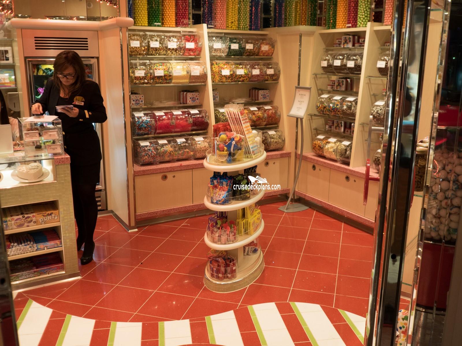 Well stocked candy and more store with confectionary favourites, cupcakes, chocolate bars, branded Cherry On Top gear, tuxedo rentals, and gifts for special occasions such as flowers and wine. Includes a premium ice cream counter with goodies for mixing and topping.