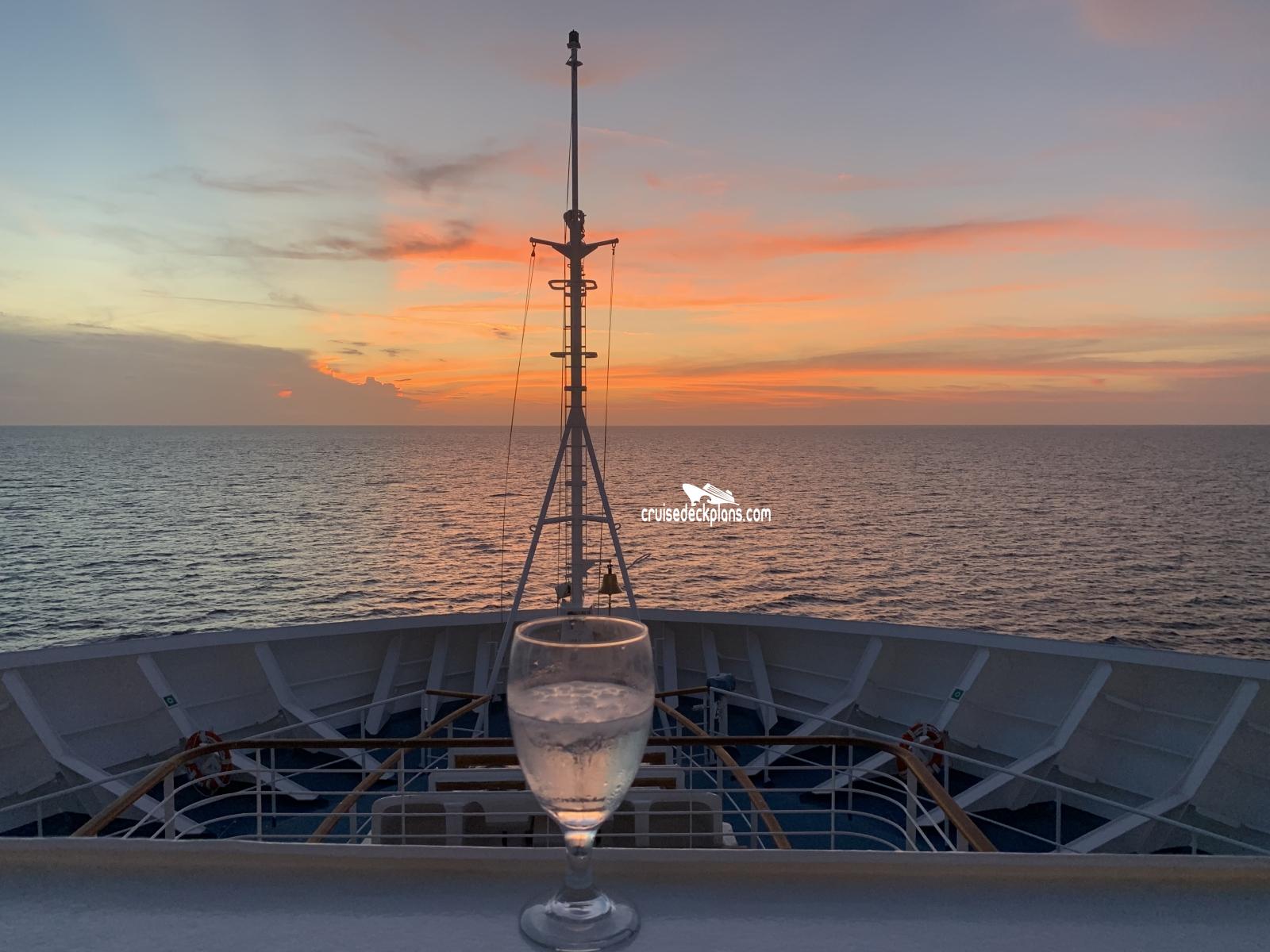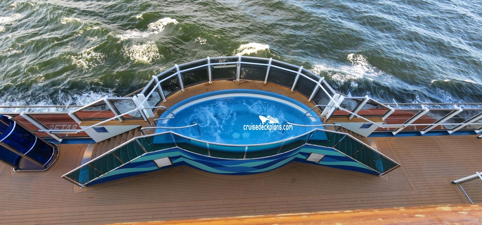 Outer promenade deck including Lania (seat 60 people). Has 4 cantilevered hot tubs. 2 and half laps around is equal to 1 mile.