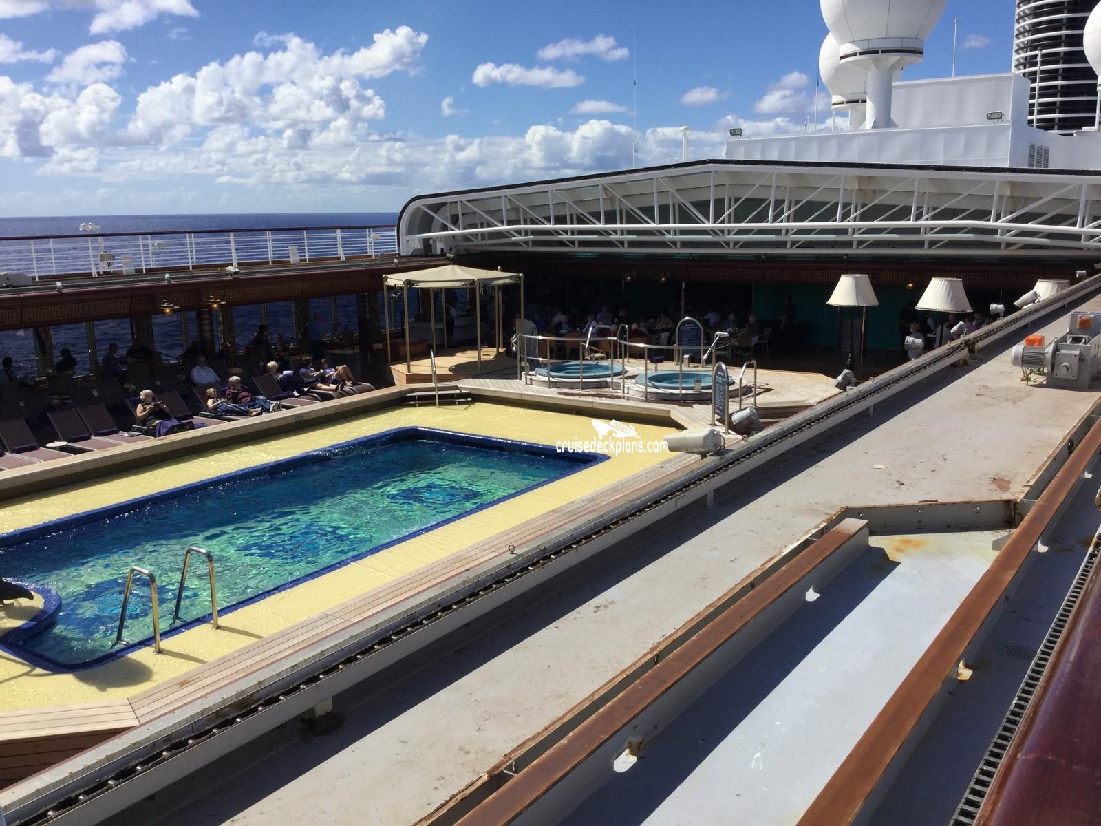 This page shows actual pictures for Noordam Sliding Dome Cover. Most of our pictures are contributed by actual cruisers. You will find that all the Noordam Sliding Dome Cover pictures on this page also posted directly onto our deck plans near the actual location the photo was taken. You can browse the pictures here or you can click on them as you are viewing the Noordam deck plans. For deck plan viewing click on the ship button above or scroll down to view the pictures on this page.