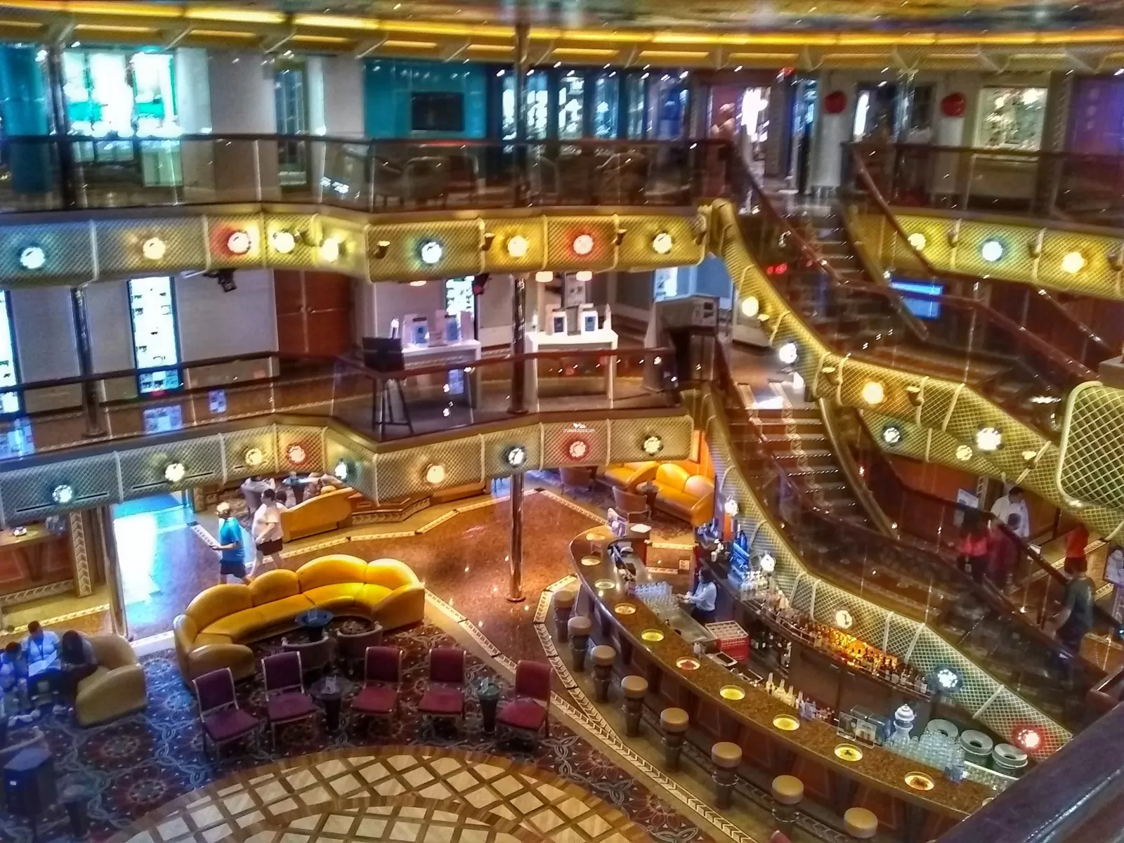Atrium that begins on deck 3 and rises to deck 10. Elevators span up the entire distance.