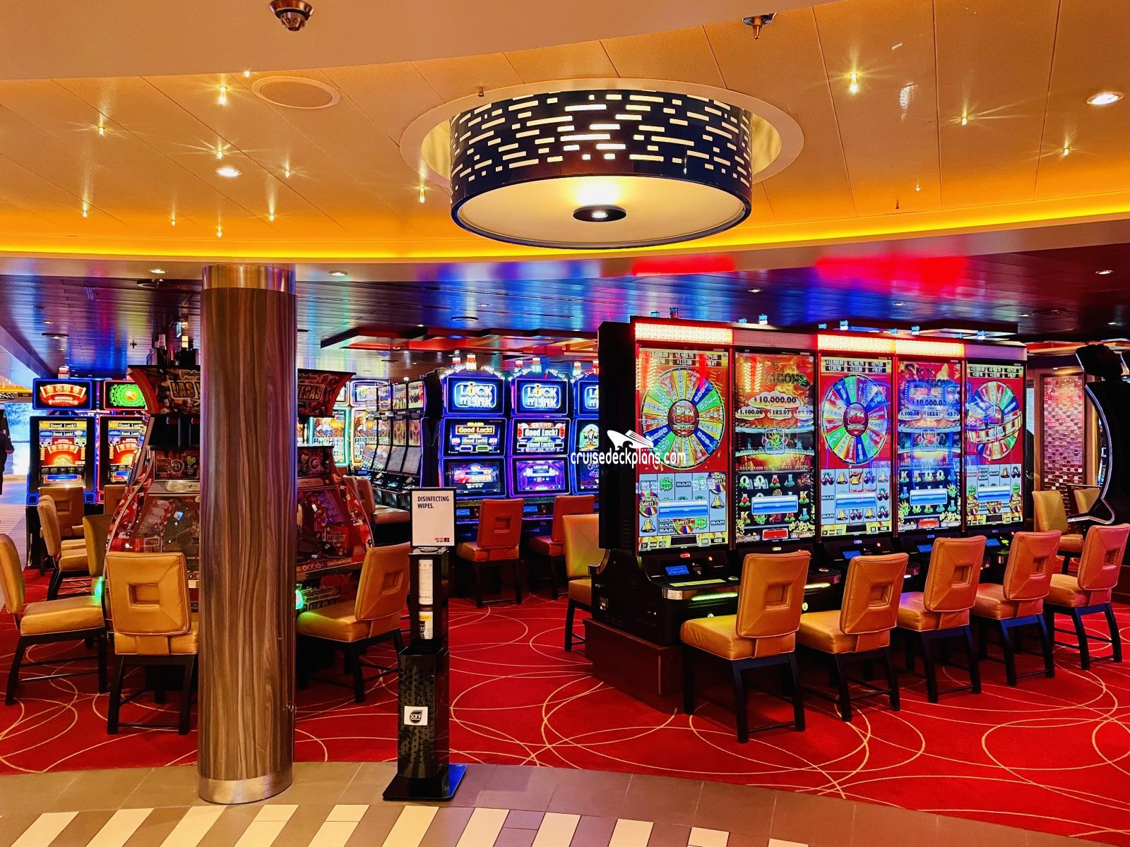 Casino with gaming tables and slot machines. The casino has its own bar. Open on sea days from 7:00 a.m. to 4:00 a.m. for slots. Gaming tables open at 10:00 a.m.