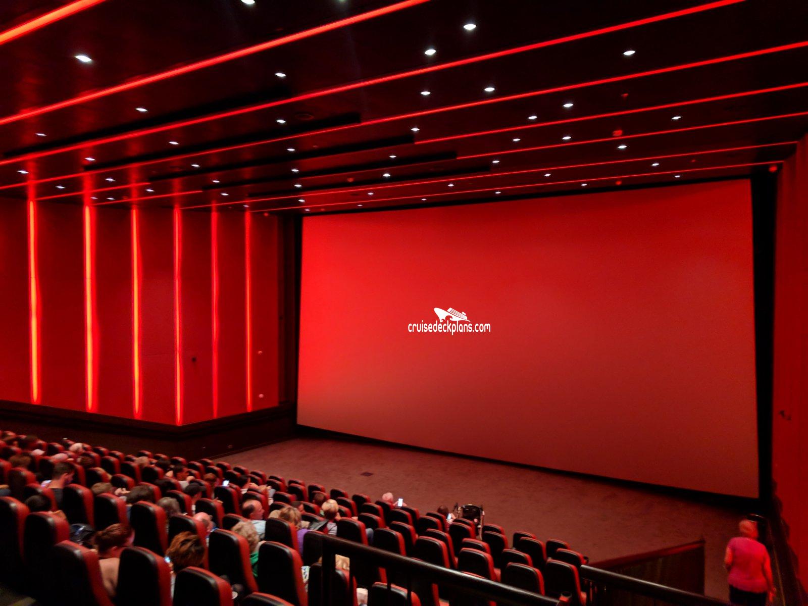 Two theaters including a IMAX Theatre with big-screen that spans decks 7, 8 and 9. Thrill Theater brings 3D to life featuring attracations with multi-dimension, special effects and motion. Lobby area with seating, kiosks to purchase movie tickets and a concession stand selling popcorn, candy and beverages.