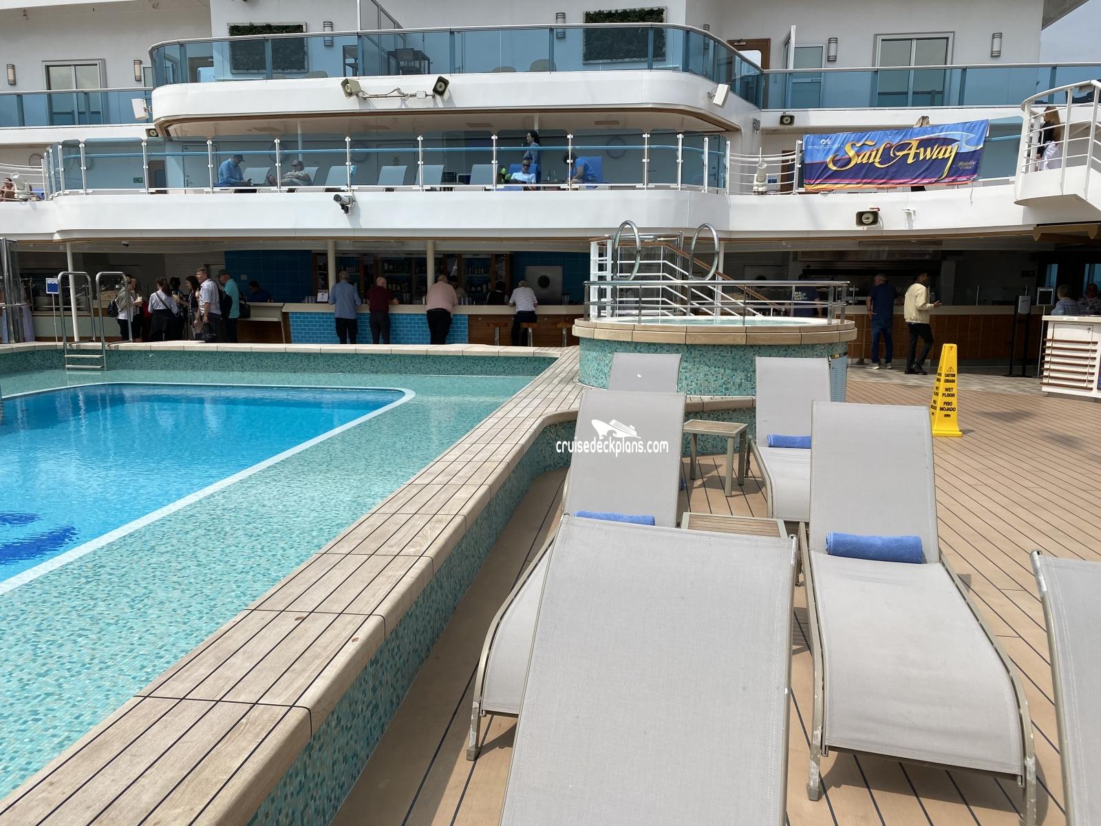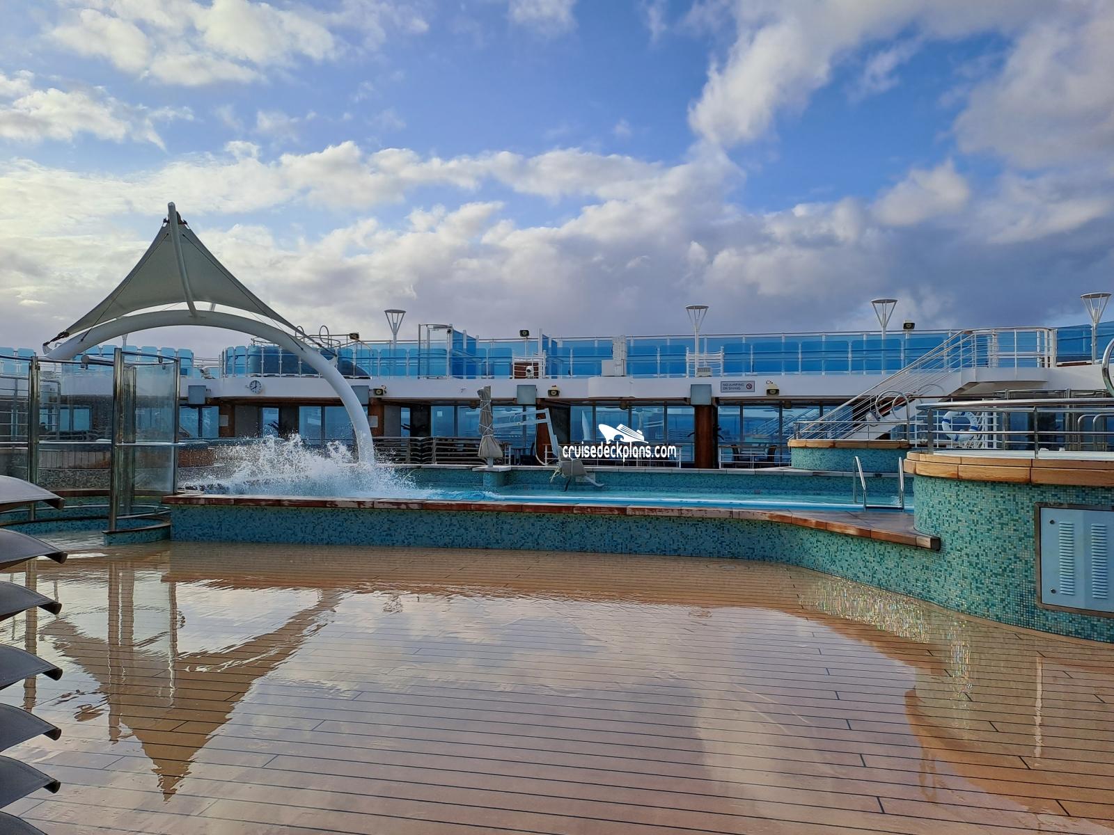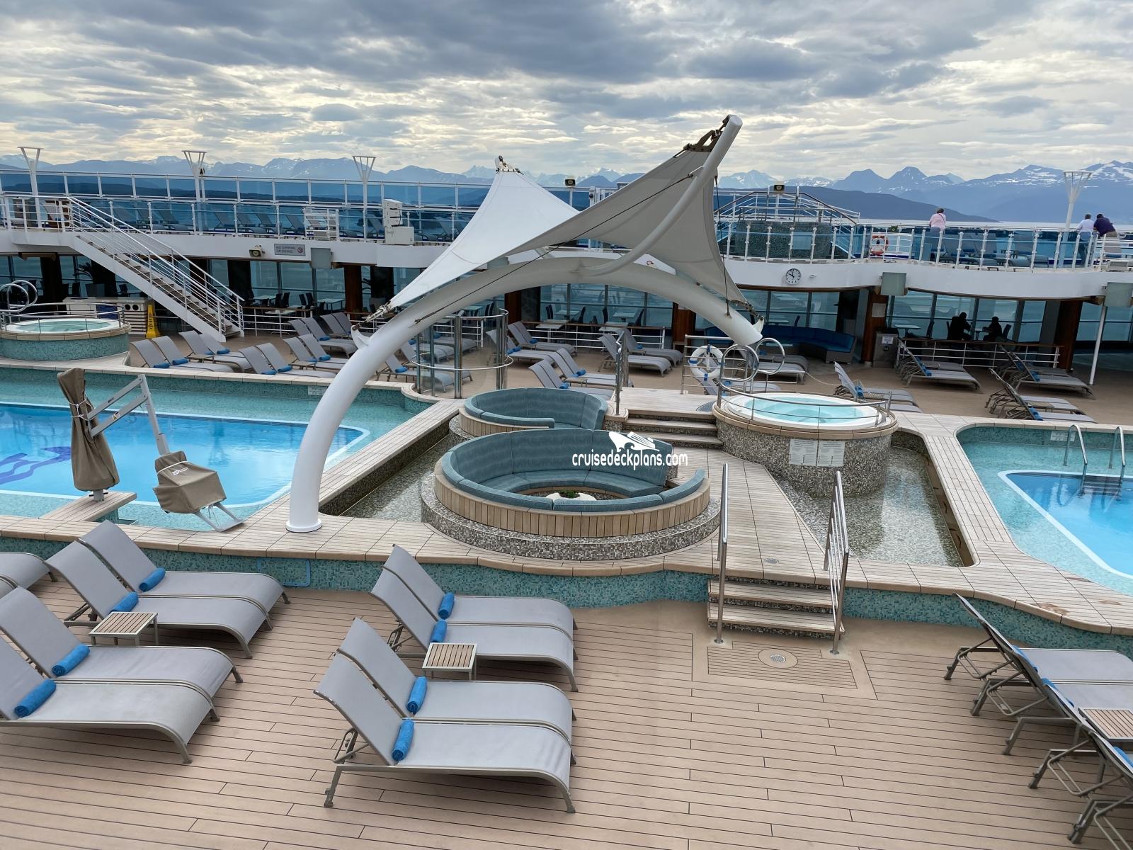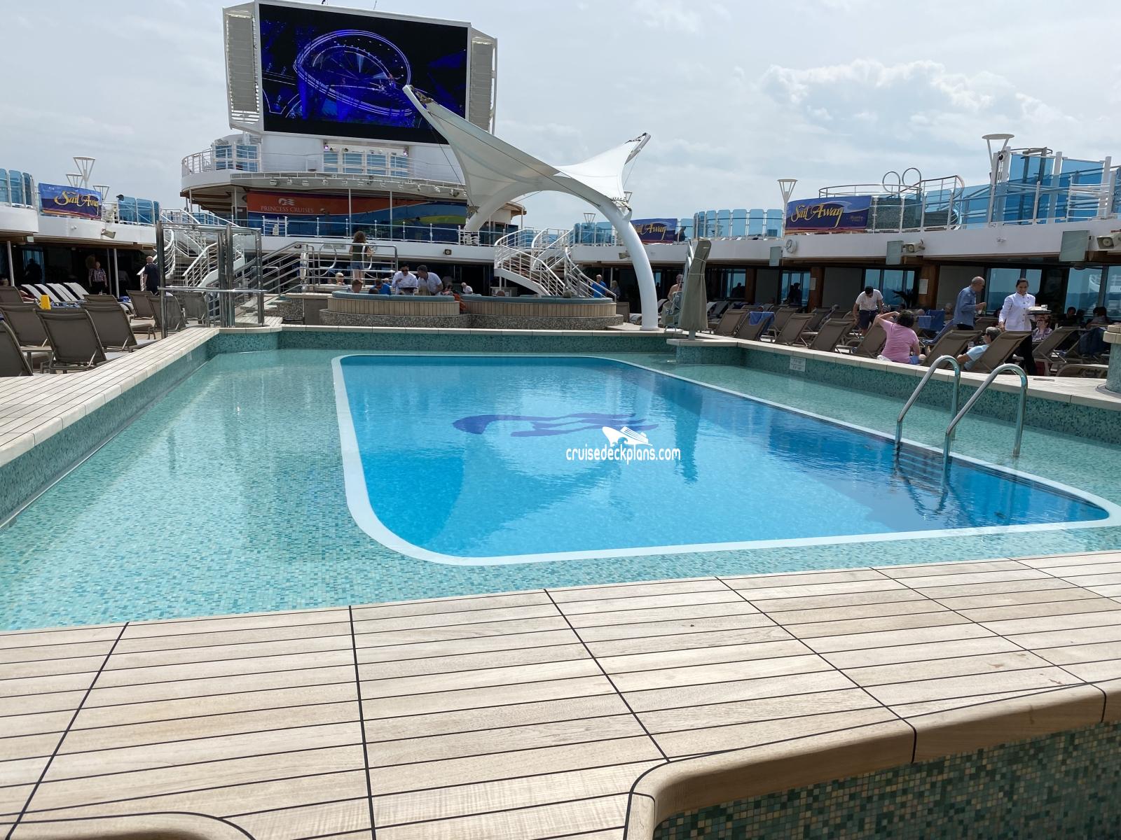 This page shows actual pictures for Sky Princess Main Pools. Most of our pictures are contributed by actual cruisers. You will find that all the Sky Princess Main Pools pictures on this page also posted directly onto our deck plans near the actual location the photo was taken. You can browse the pictures here or you can click on them as you are viewing the Sky Princess deck plans. For deck plan viewing click on the ship button above or scroll down to view the pictures on this page.