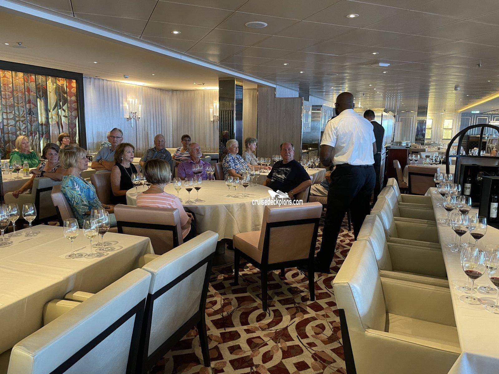 Contemporary French Dining, Seats 346 and serves dinner. Wooden panels from this former venue on the Celebrity Summit are incorporated into the design. French cuisine in a modern, upscale refined atmosphere to evoke the romance of springtime in Paris. Color palette similar to cherry blossoms in full bloom. Enjoy regional European wines, unique cocktails, and tantalizing appetizers.
