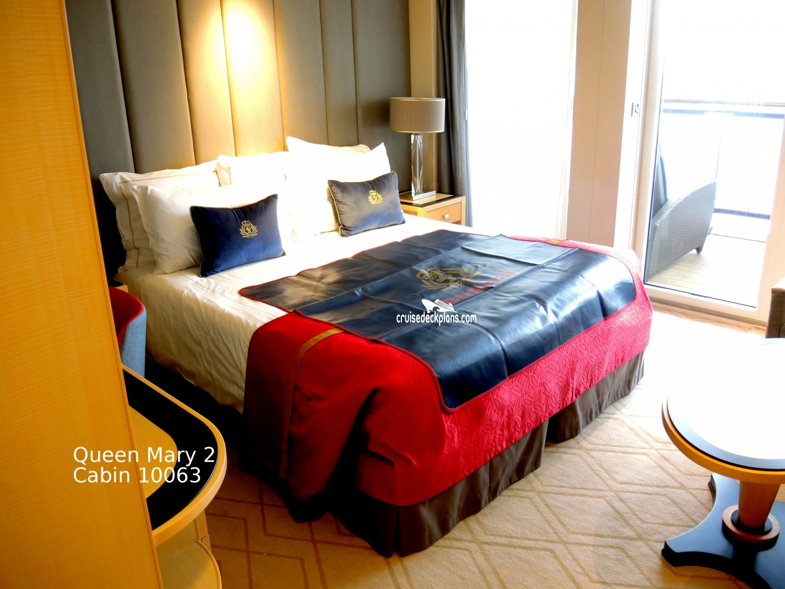 These are some actual stateroom pictures of cabin 10063 on the Queen Mary 2. Click on images below for larger image and slide show. The slide show will show the date the picture was uploaded to out website. This date is useful because Queen Mary 2 typically will update its cabins every three to five years with new carpeting and decor. We will keep older pictures for you to compare the more recent photos to. The pictures are sorted by the newest ones first. Most of our cabin pictures are contributed by actual cruisers. We pay 50 cents for any that we use. You can upload your cabin photos HERE. Afer you are done looking at these photos and/or the videos below you can click here to select another cabin.