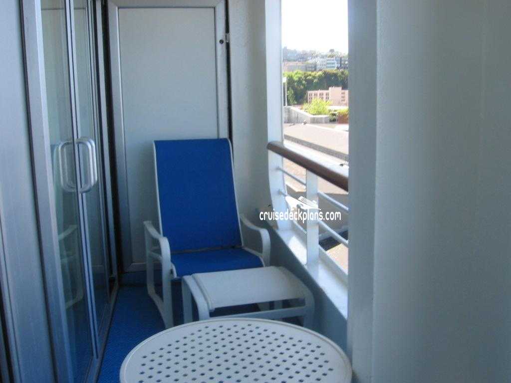 Category M4 ranges from 275 to 335 square feet plus 78 to 90 square foot balcony. All other Mini-Suites are 370 square feet plus 52 square foot balcony.