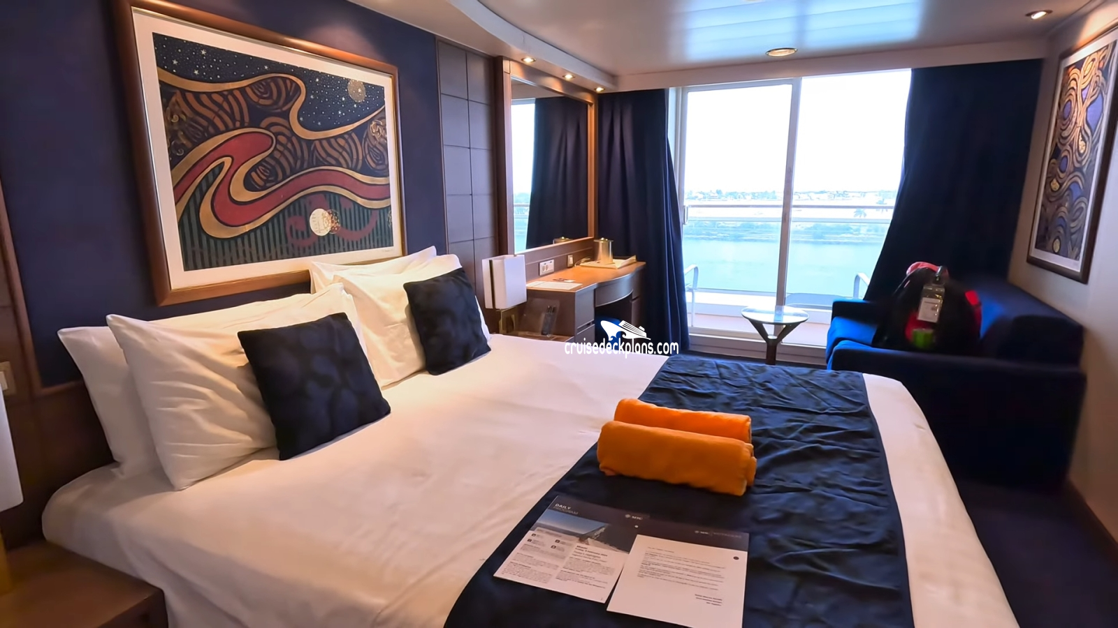 Midship Balconies are larger. Forward and Aft balconies are around 126 square feet plus 40 square foot balcony. Category BR1 sleeps up to 3. Category BM1 and BM2 sleep up to 2. All others sleep up to 4.